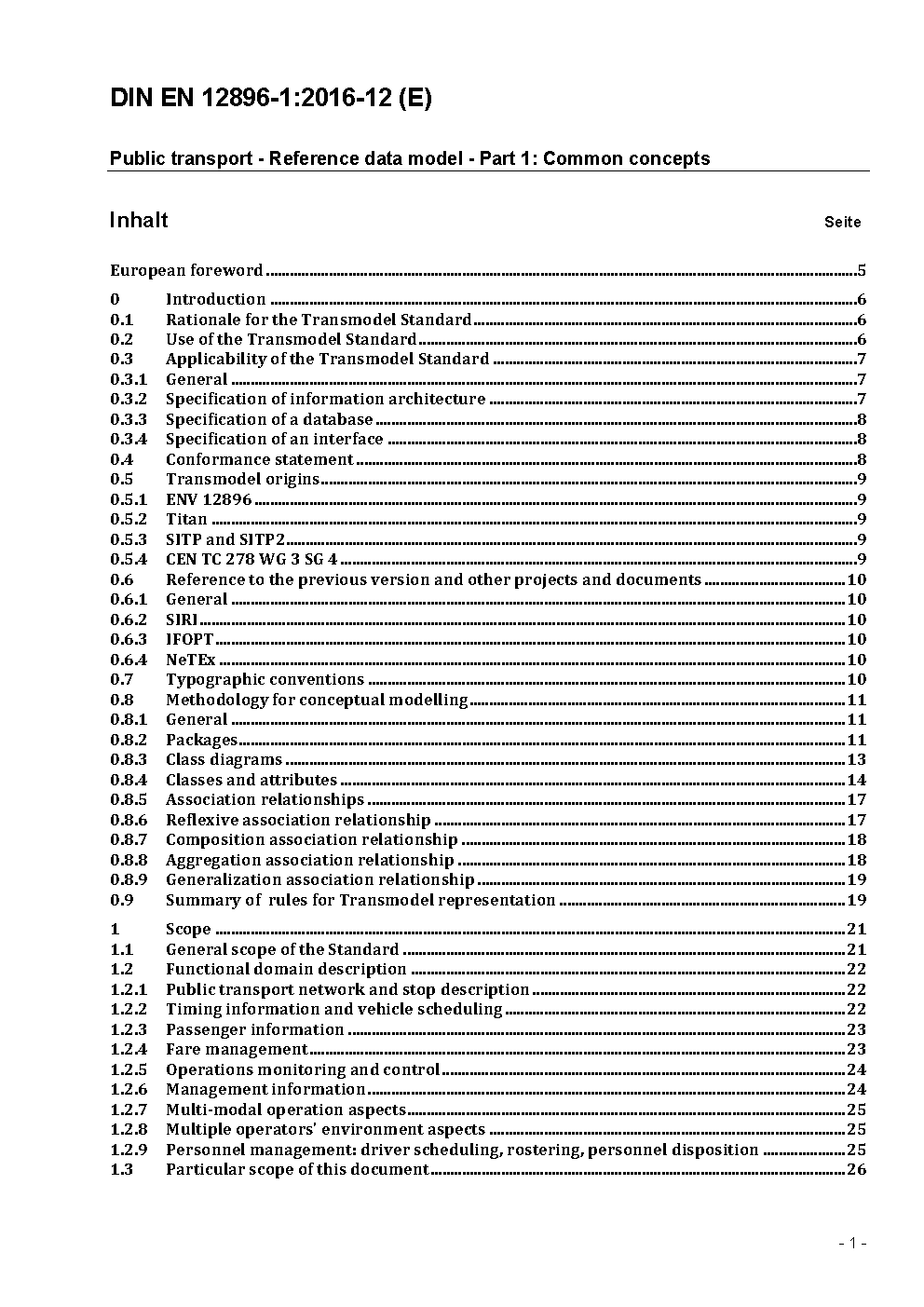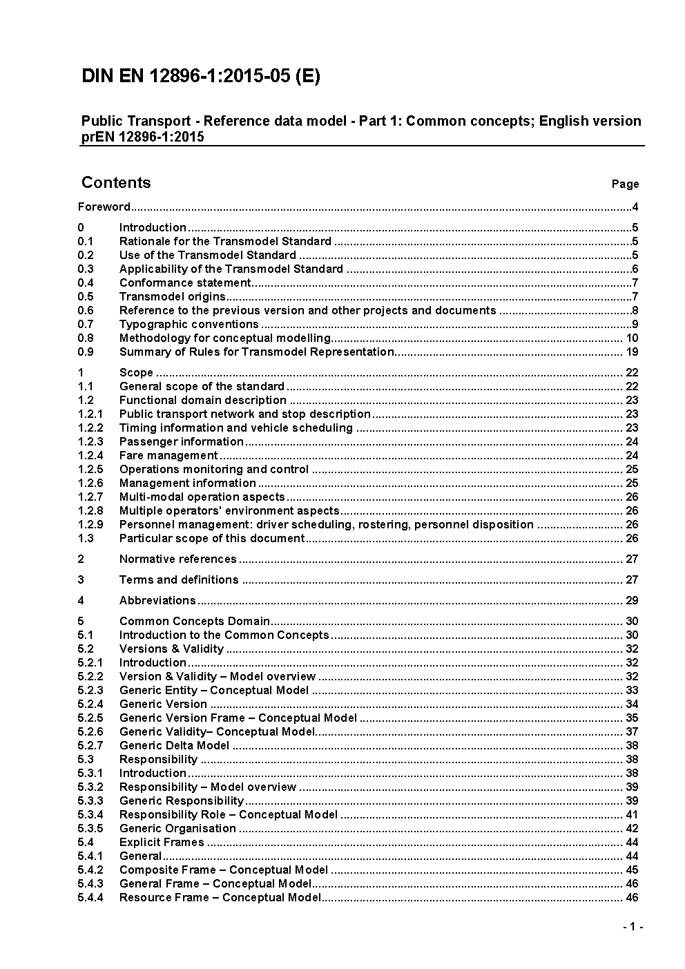 Öffentlicher Verkehr - Datenreferenzmodell - Teil 1: Gemeinsame Konzepte; Englische Fassung EN 12896-1:2016