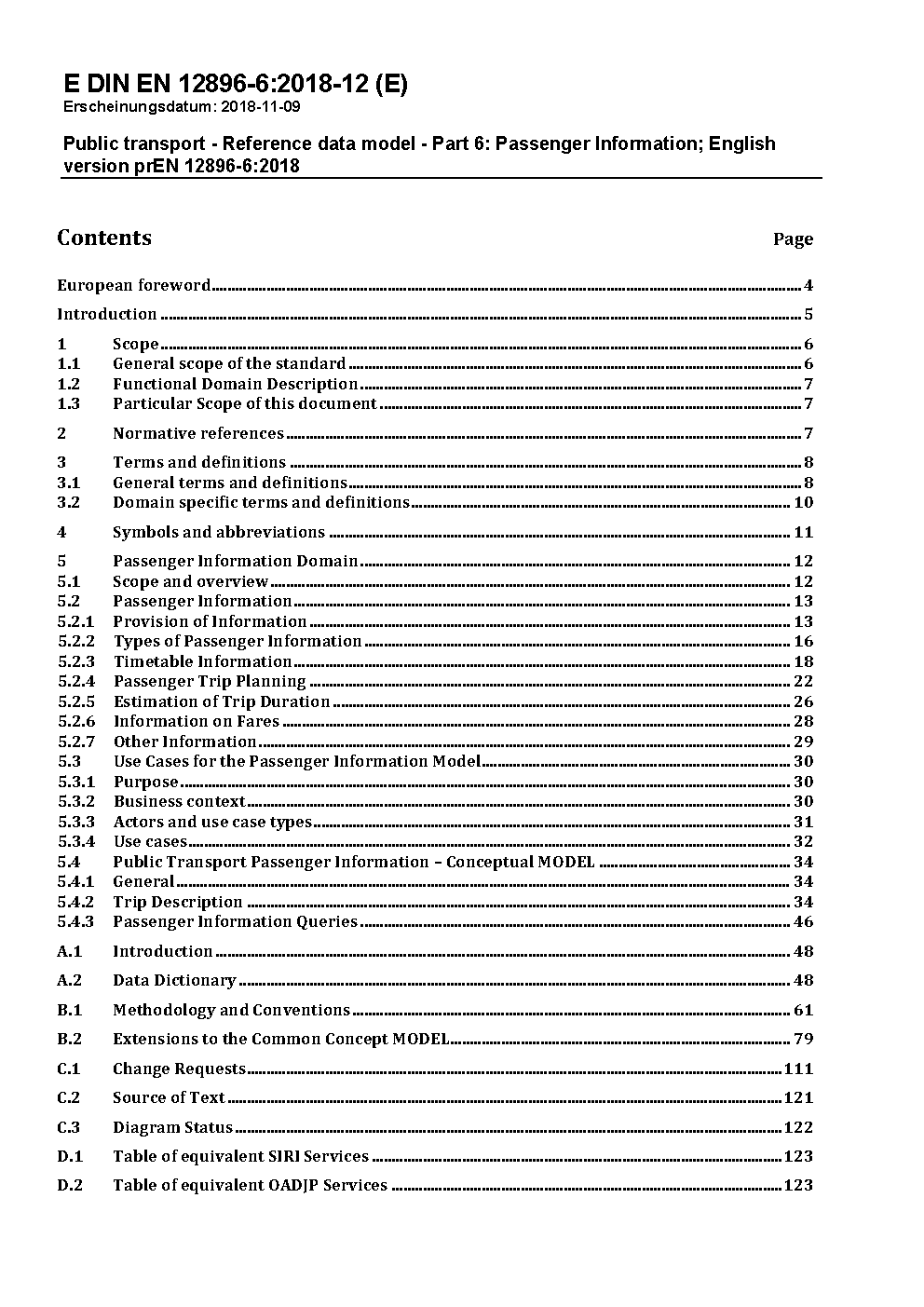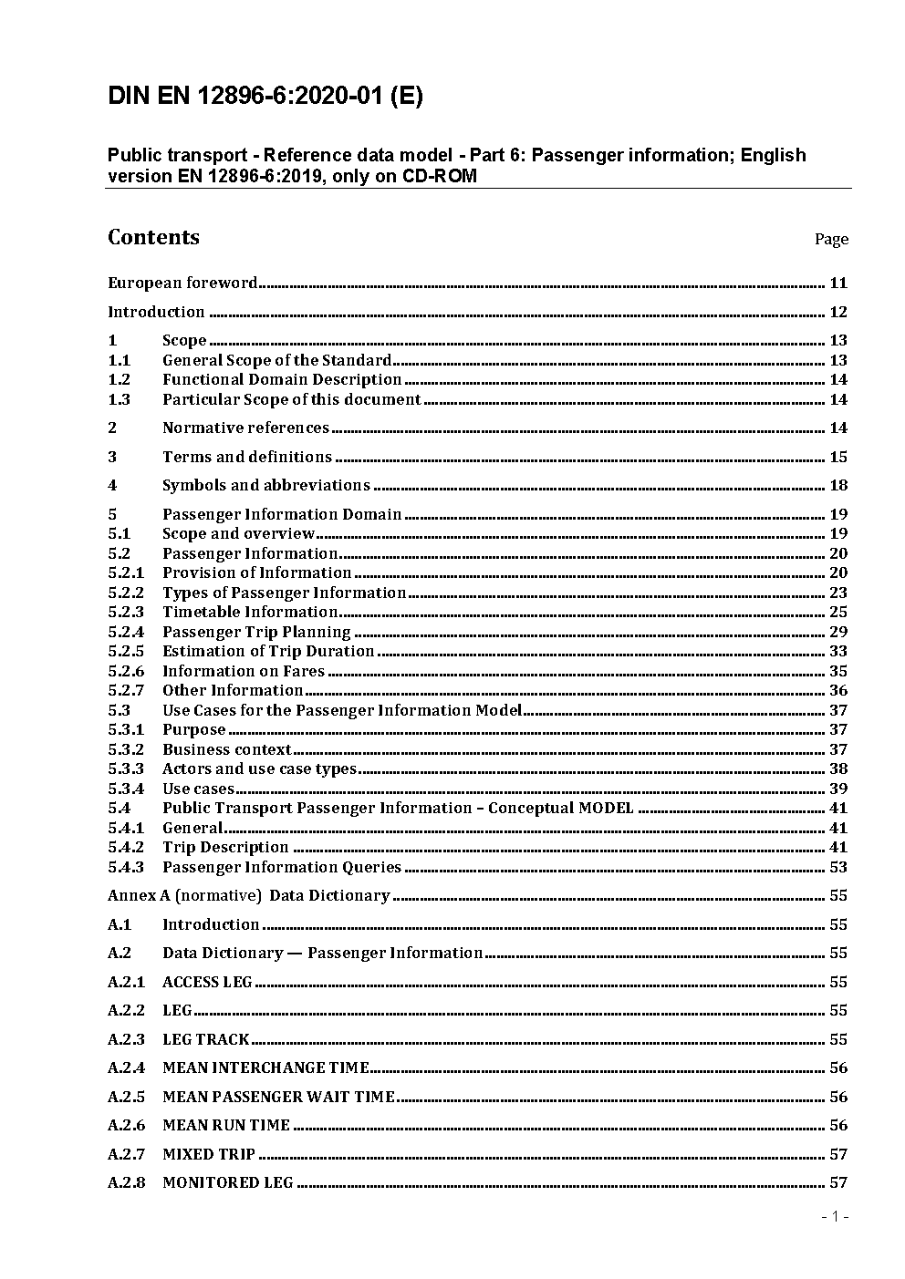 Public transport - Reference data model - Part 6: Passenger information; English version EN 12896-6:2019, only on CD-ROM.