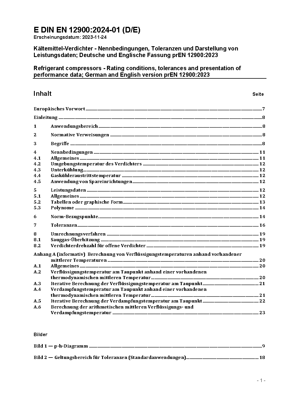 Kältemittel-Verdichter - Nennbedingungen, Toleranzen und Darstellung von Leistungsdaten des Herstellers; Deutsche Fassung EN 12900:2005