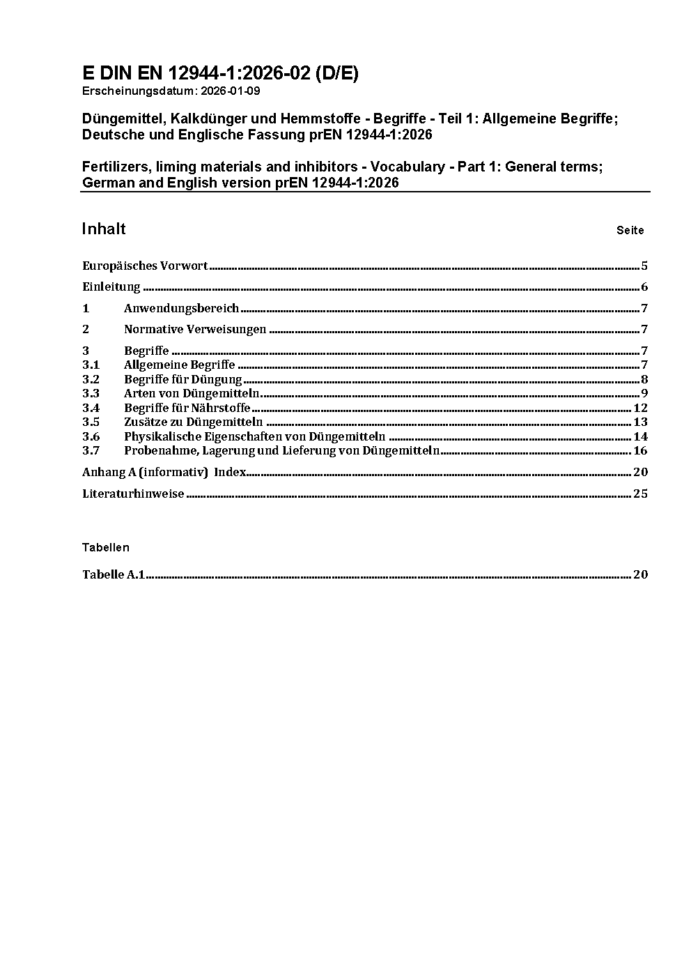 Düngemittel und Calcium-/Magnesium-Bodenverbesserungsmittel - Wörterbuch - Teil 1: Allgemeine Begriffe (enthält Berichtigung AC:2000); Deutsche Fassung EN 12944-1:1999 + AC:2000