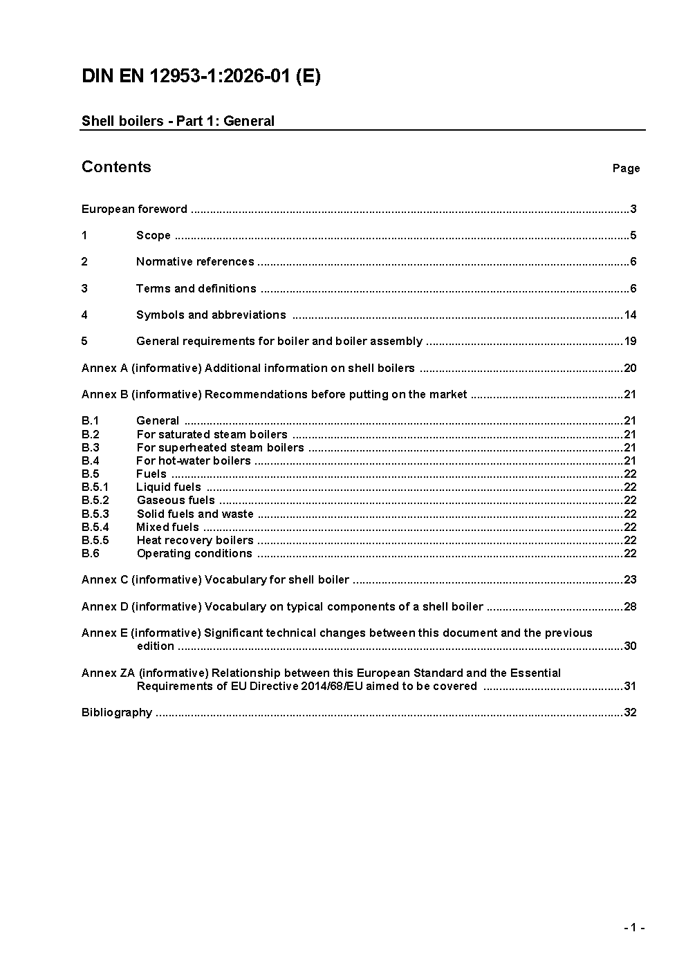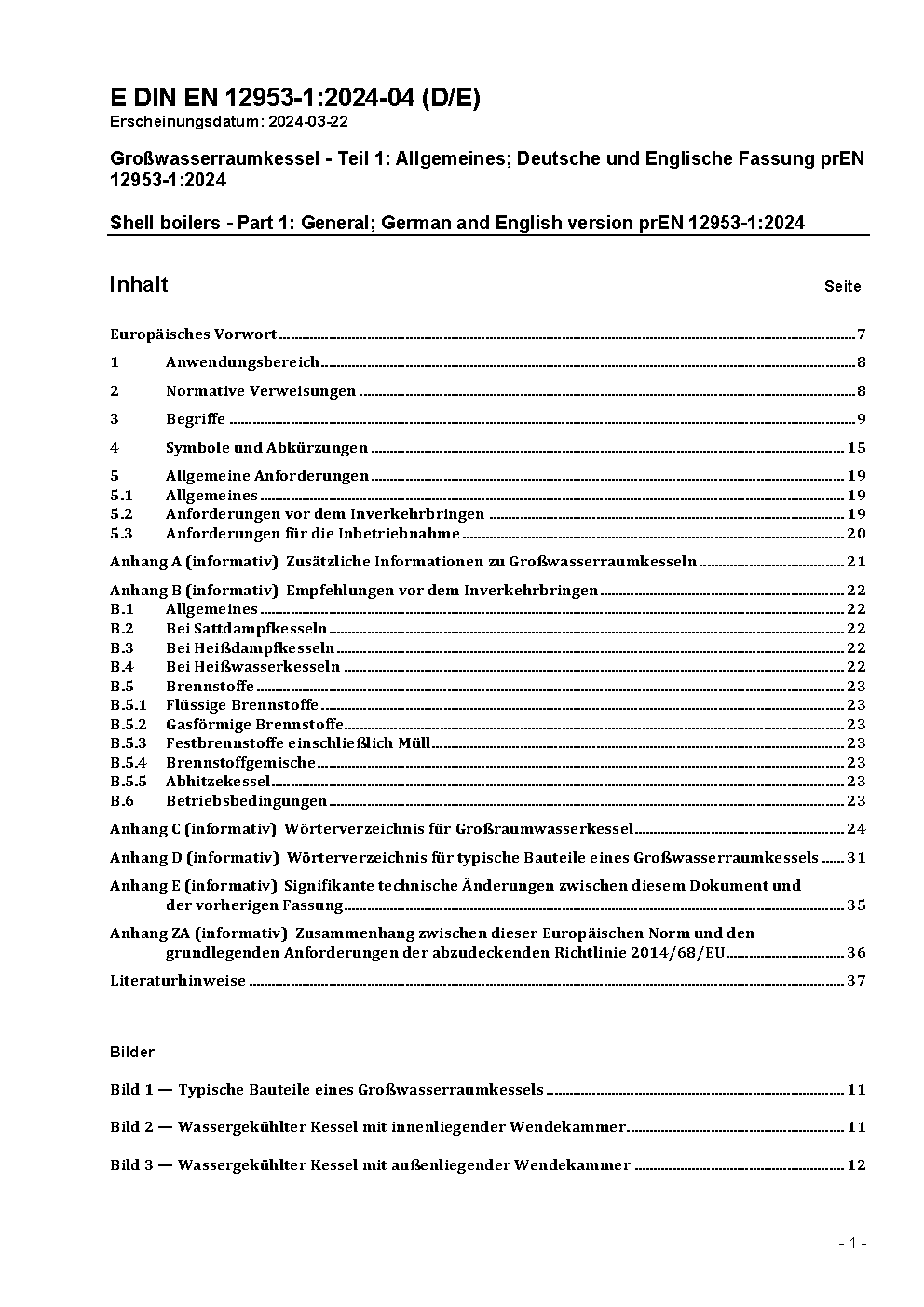 Shell boilers - Part 1: General; German and English version prEN 12953-1:2024