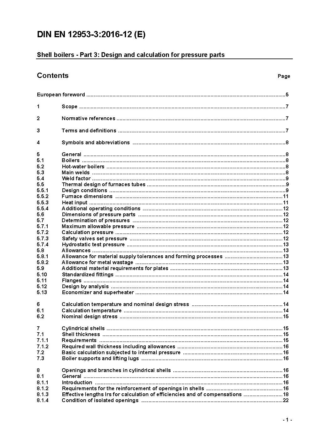 Shell boilers - Part 3: Design and calculation; German version prEN 12953-3:1998