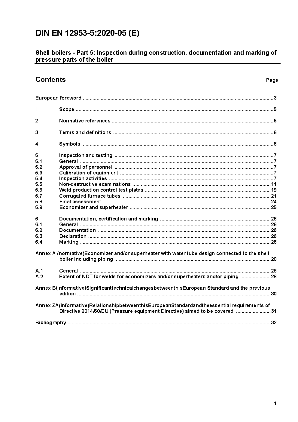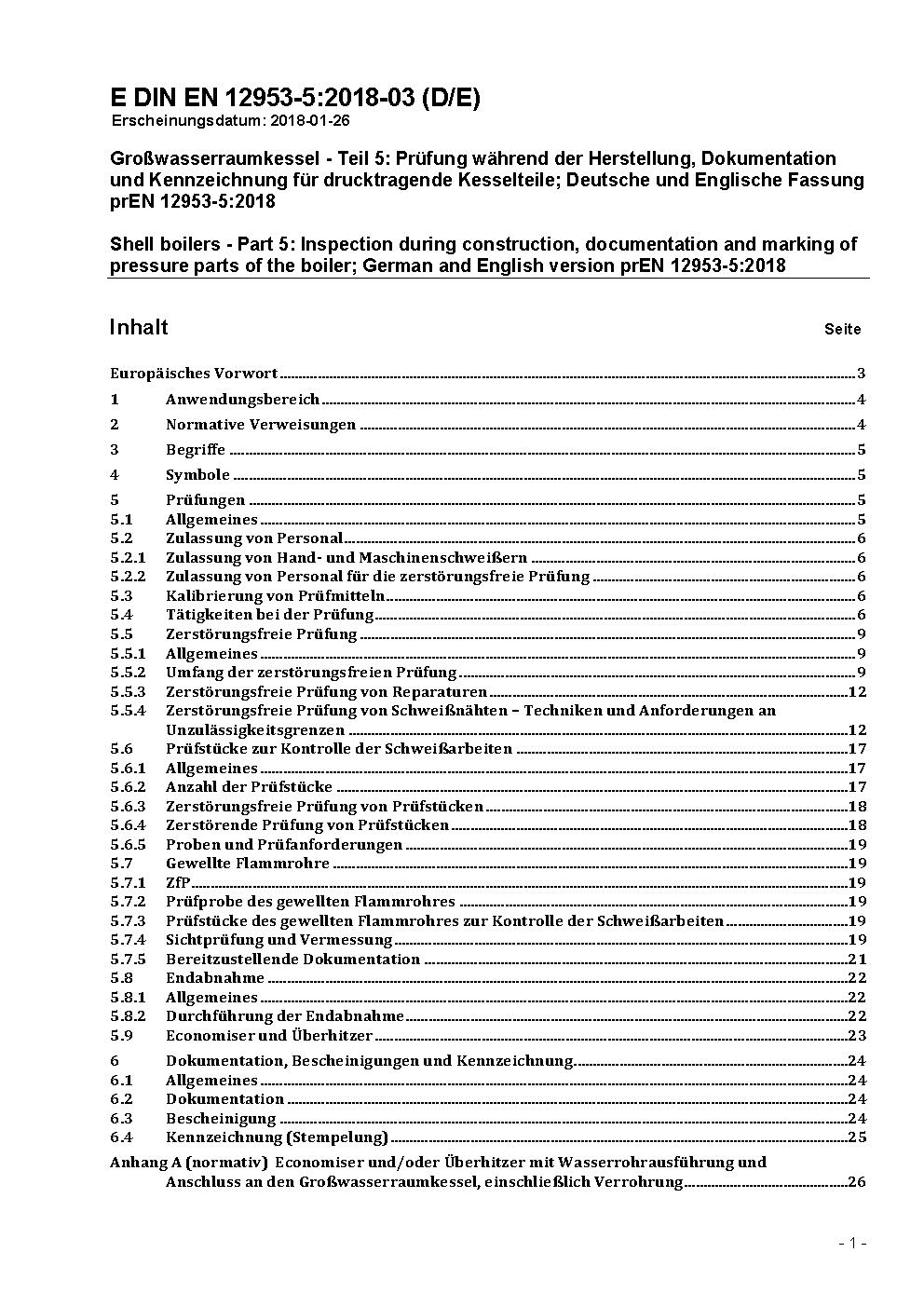 Shell boilers - Part 5: Inspection during construction, documentation and marking of pressure parts of the boiler; German version EN 12953-5:2002