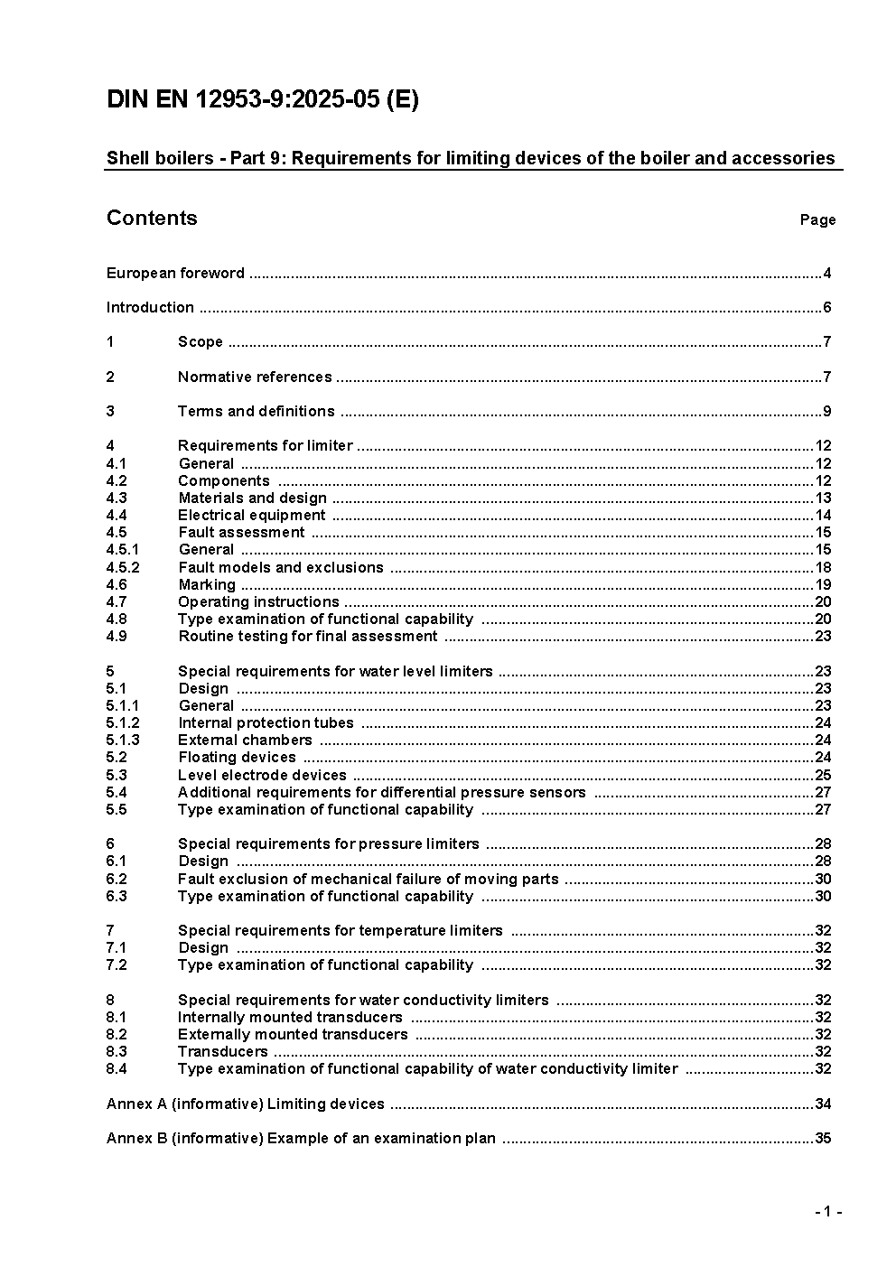 Shell boilers - Part 9: Requirements for limiting devices of the boiler and accessories; German and English version prEN 12953-9:2023