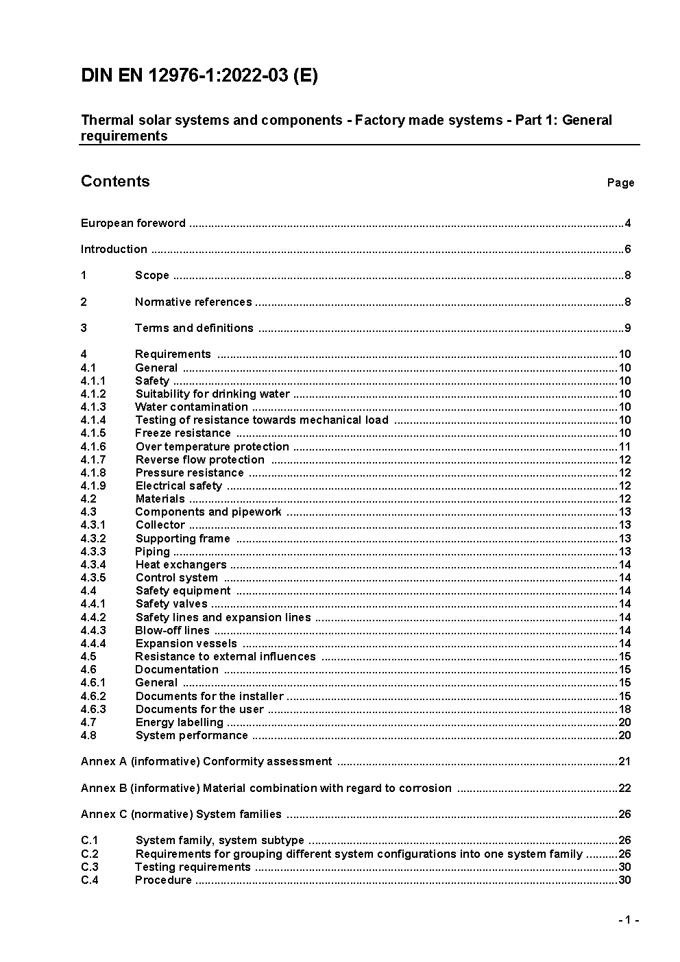 Thermal solar systems - Factory made systems - Part 1: General requirements; German version prEN 12976-1:1997