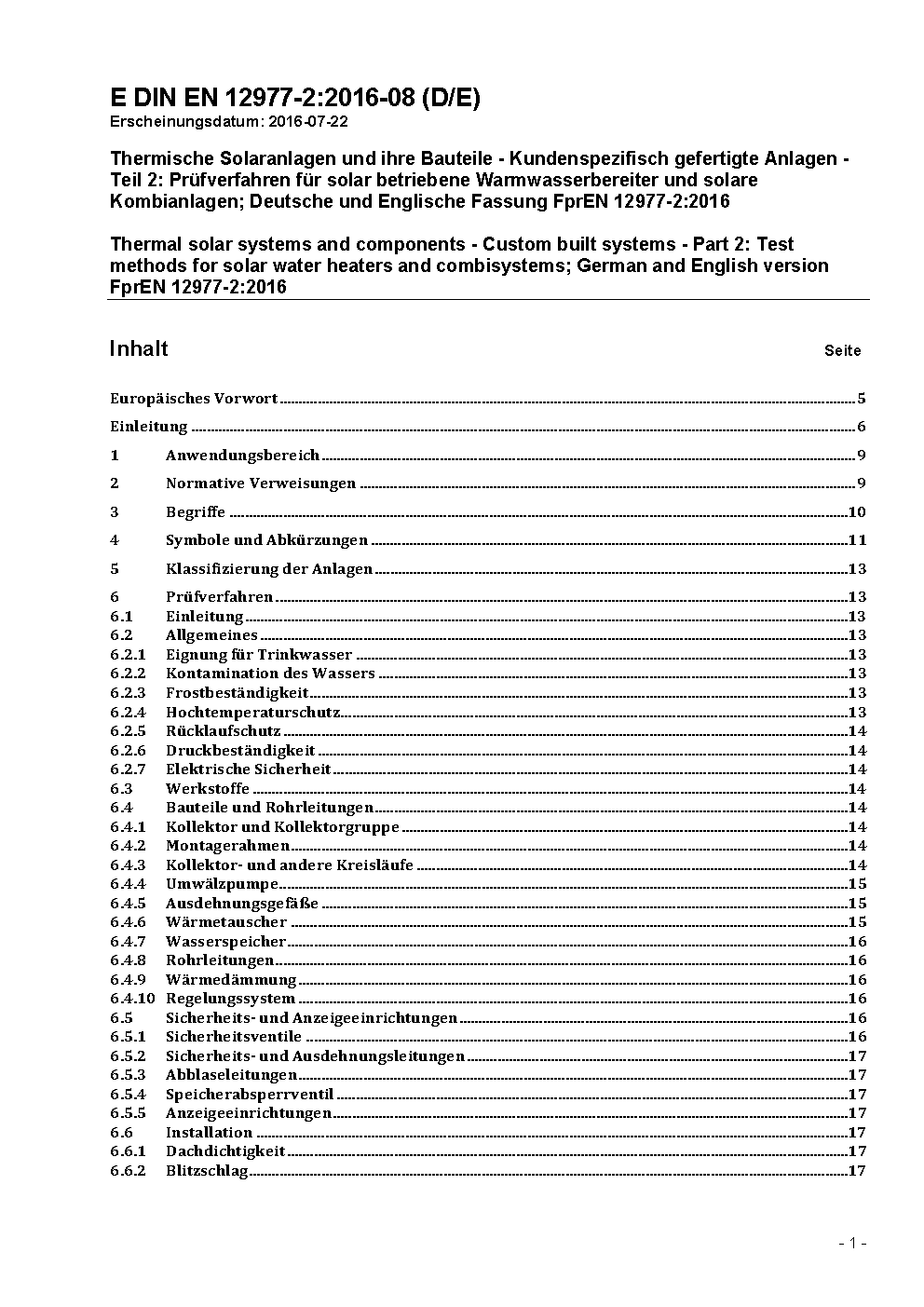 Thermische Solaranlagen und ihre Bauteile - Kundenspezifisch gefertigte Anlagen - Teil 2: Prüfverfahren für Solaranlagen zur Trinkwassererwärmung und solare Kombianlagen; Deutsche Fassung EN 12977-2:2018