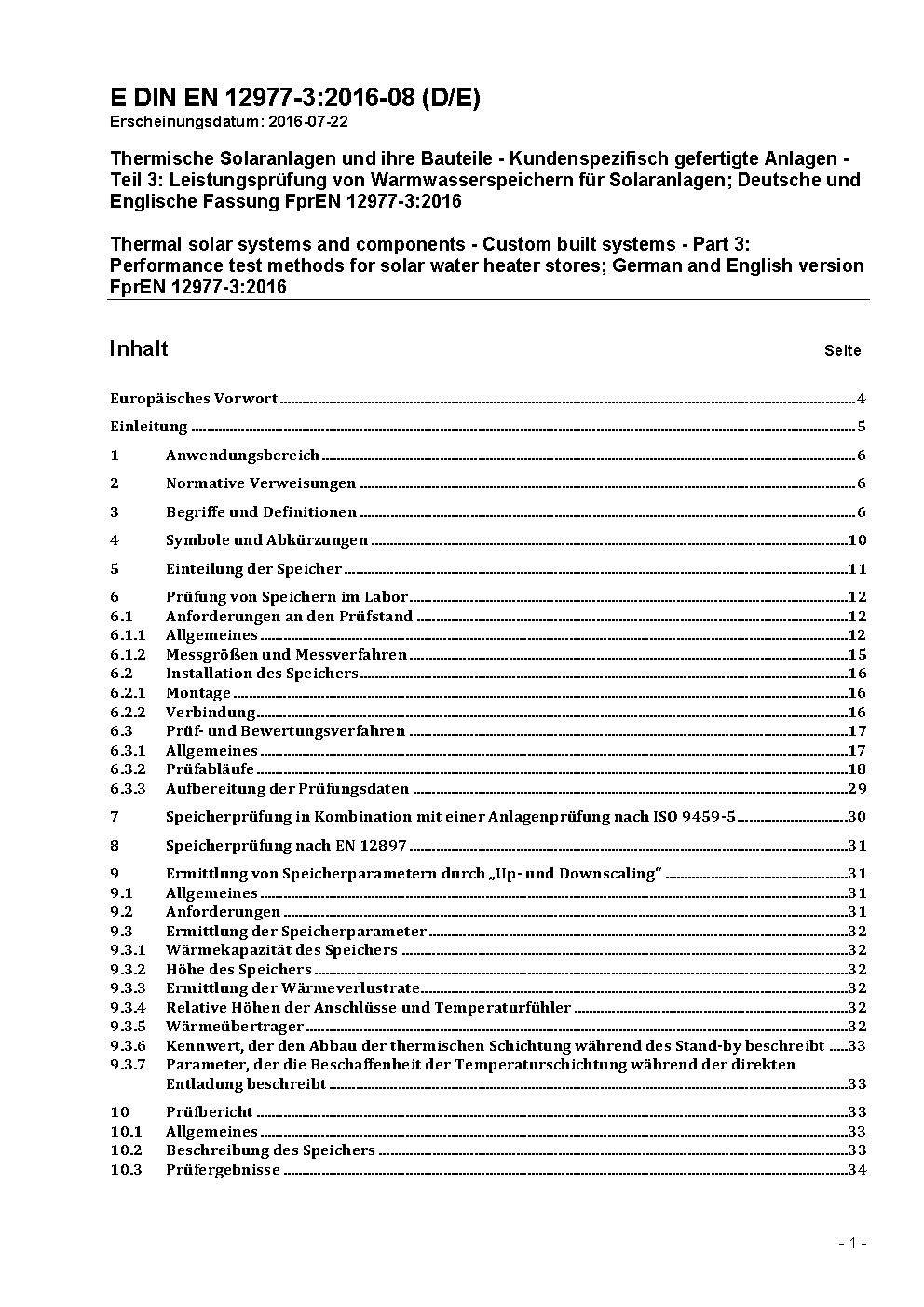 Thermische Solaranlagen und ihre Bauteile - Kundenspezifisch gefertigte Anlagen - Teil 3: Leistungsprüfung von Warmwasserspeichern für Solaranlagen; Deutsche Fassung EN 12977-3:2018