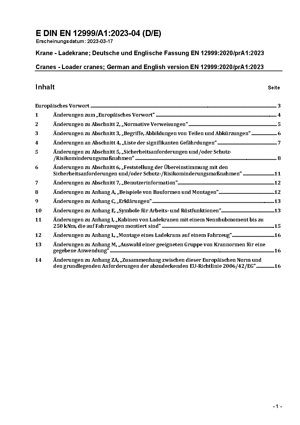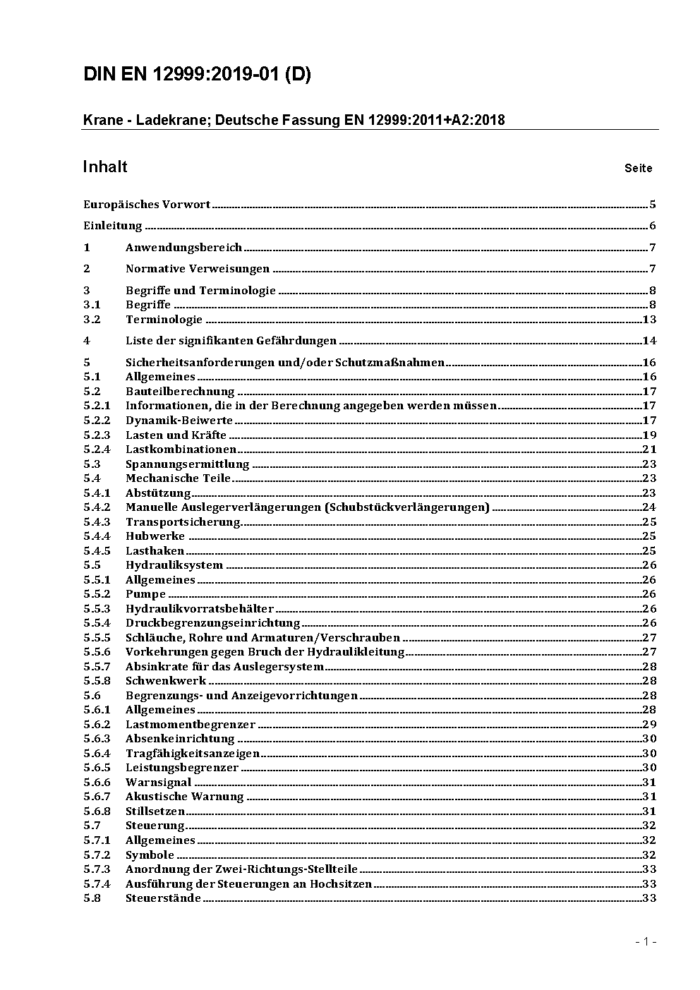 Krane - Ladekrane; Deutsche Fassung EN 12999:2002