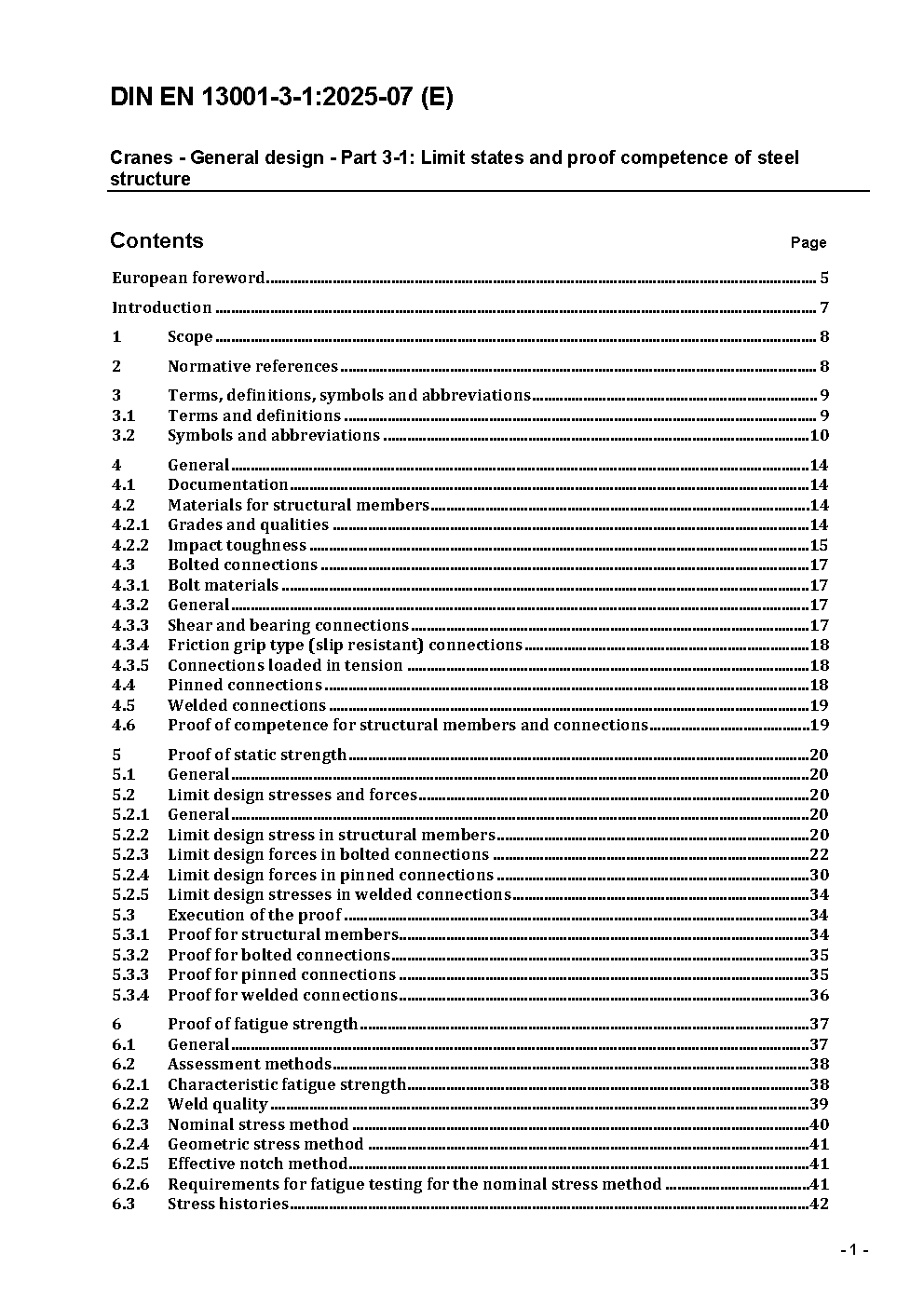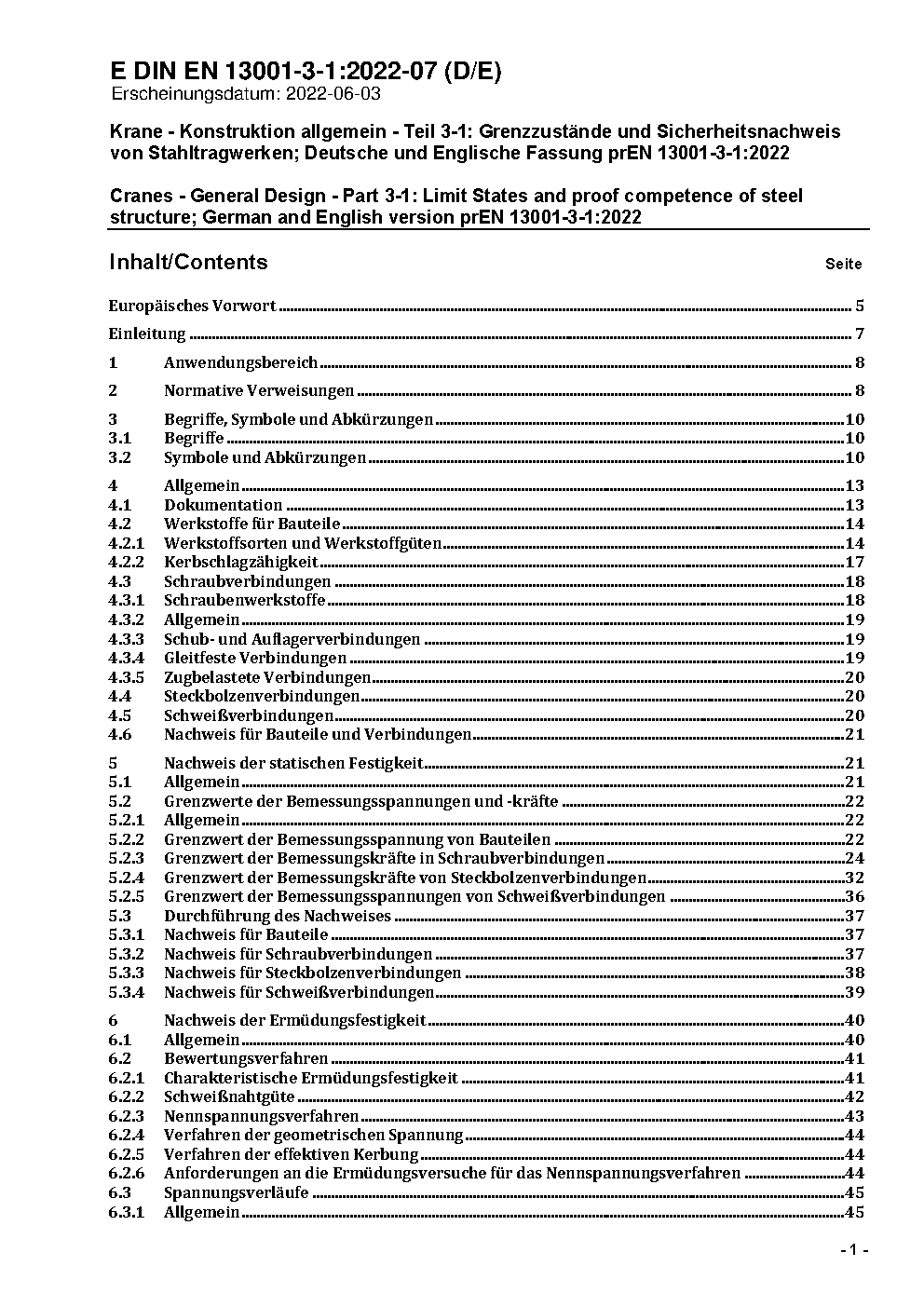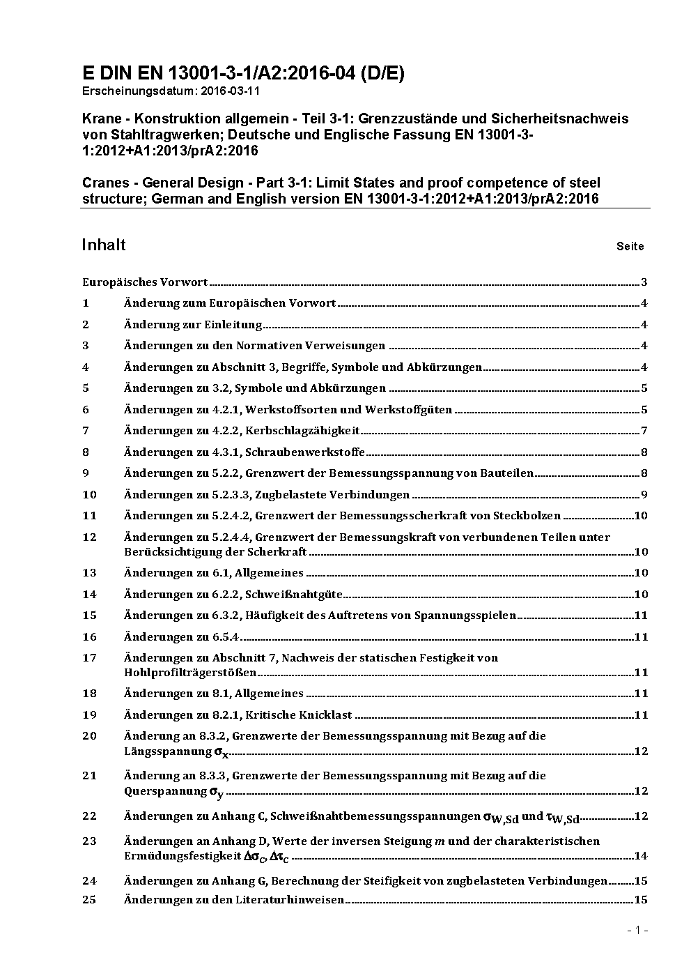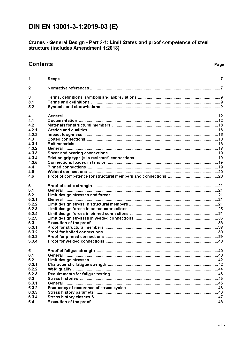 Cranes - General Design - Part 3-1: Limit States and proof competence of steel structure; German version EN 13001-3-1:2012+A2:2018.