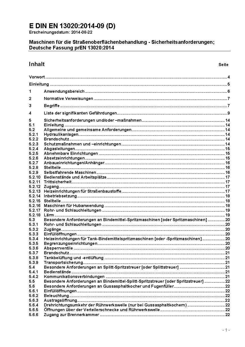 Maschinen für die Straßenoberflächenbehandlung - Sicherheitsanforderungen; Deutsche Fassung EN 13020:2004/FprA1:2009