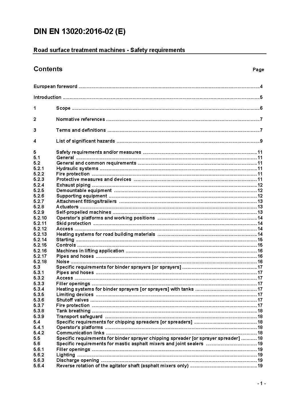 Road surface treatment machines - Safety requirements; German version EN 13020:2004/FprA1:2009