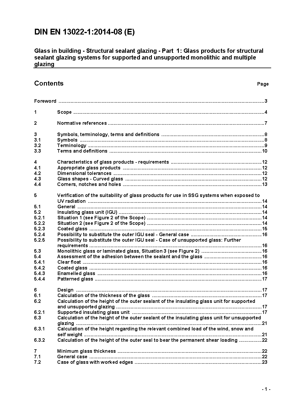 Glass in building - Structural sealant glazing - Part 1: Glass products for structural sealant glazing systems for supported and unsupported monolithic and multiple glazing; German version EN 13022-1:2006+A1:2010