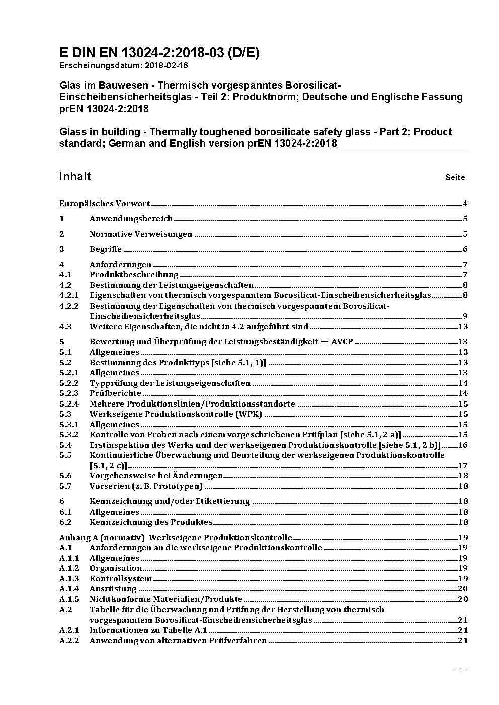 Glas im Bauwesen - Thermisch vorgespanntes Borosilicat-Einscheibensicherheitsglas - Teil 2: Konformitätsbewertung/Produktnorm; Deutsche Fassung EN 13024-2:2004