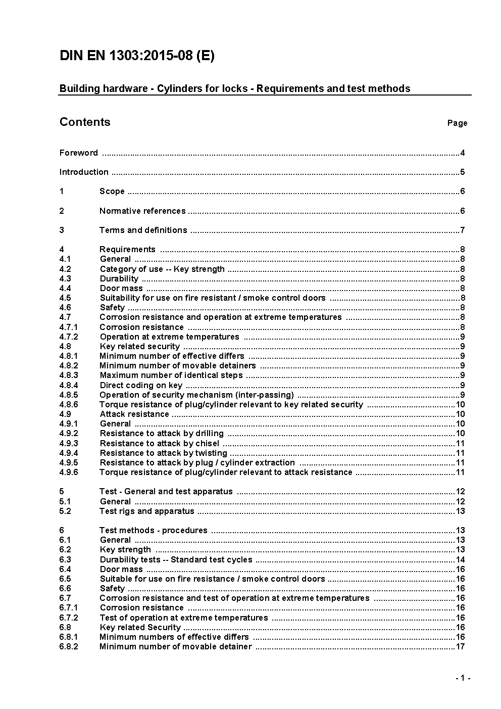 Building hardware - Cylinders for locks - Requirements and test methods; German version EN 1303:2005, Corrigendum to DIN EN 1303:2005-04; German version EN 1303:2005/AC:2008