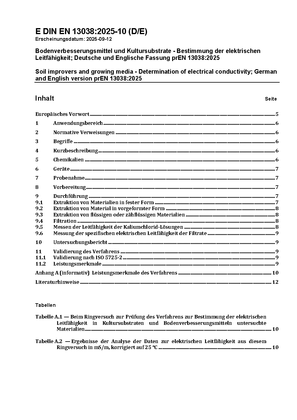 Bodenverbesserungsmittel und Kultursubstrate - Bestimmung der elektrischen Leitfähigkeit; Deutsche Fassung EN 13038:1999