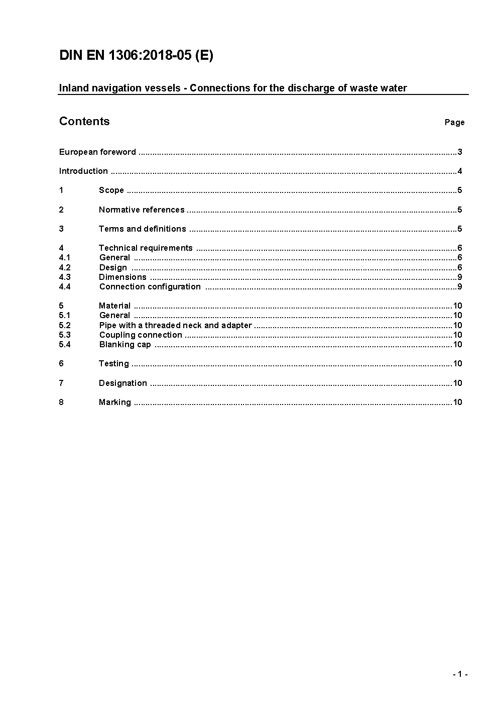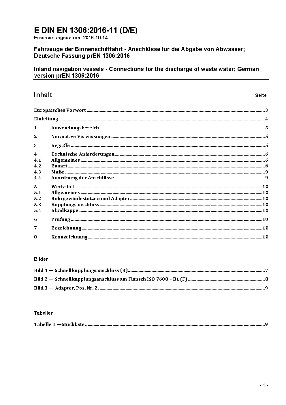 Inland navigation vessels; connections for the discharge of sewage water; German version prEN 1306:1994