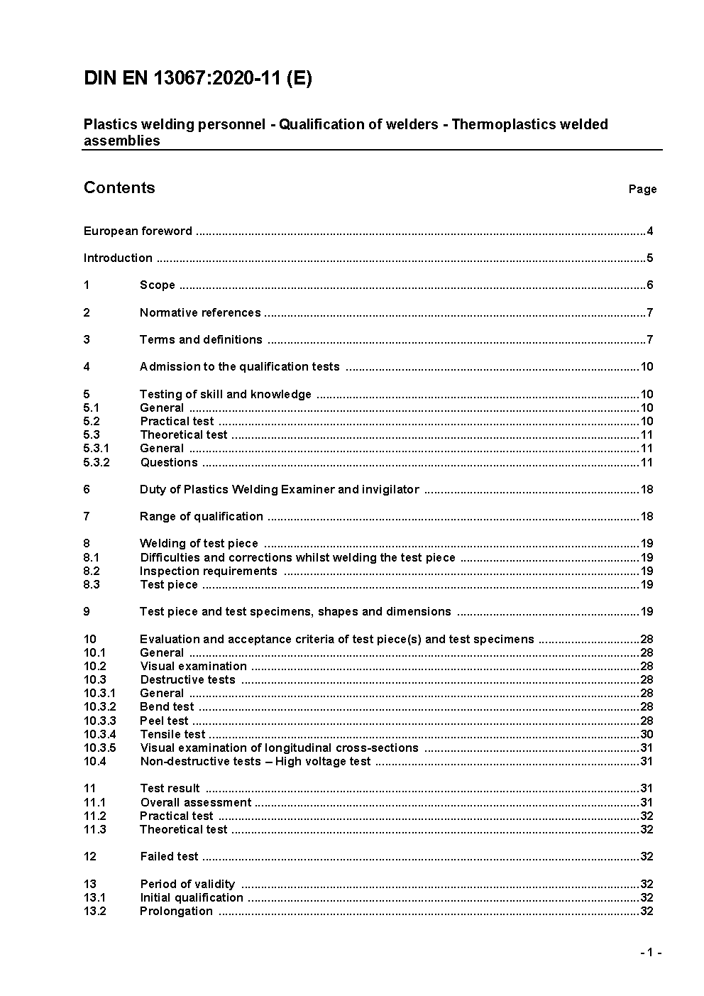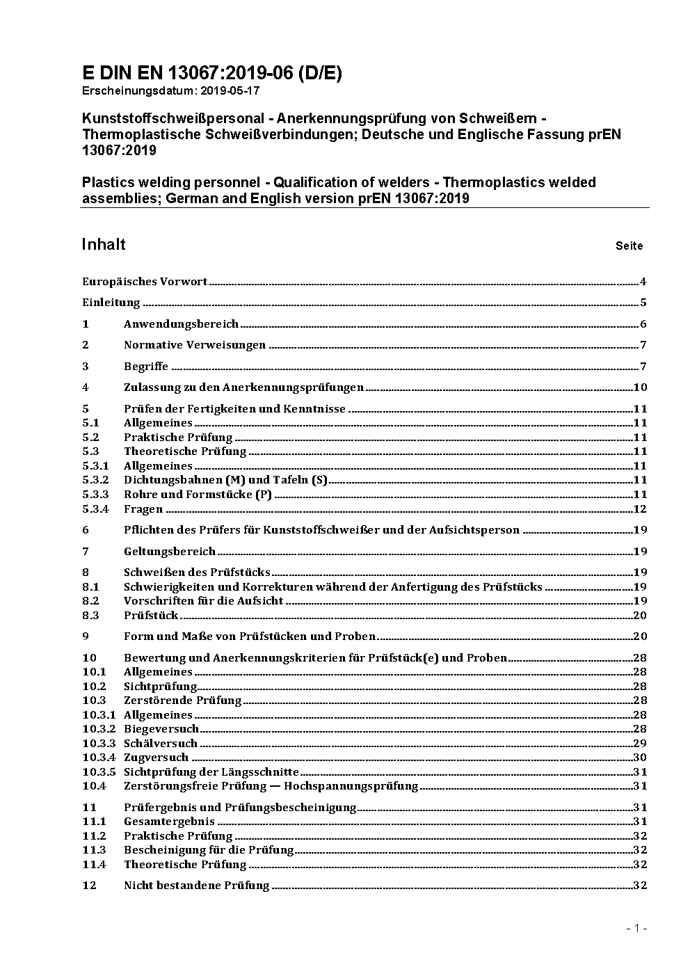 Kunststoffschweißpersonal - Anerkennungsprüfung von Schweißern - Thermoplastische Schweißverbindungen; Deutsche Fassung EN 13067:2003