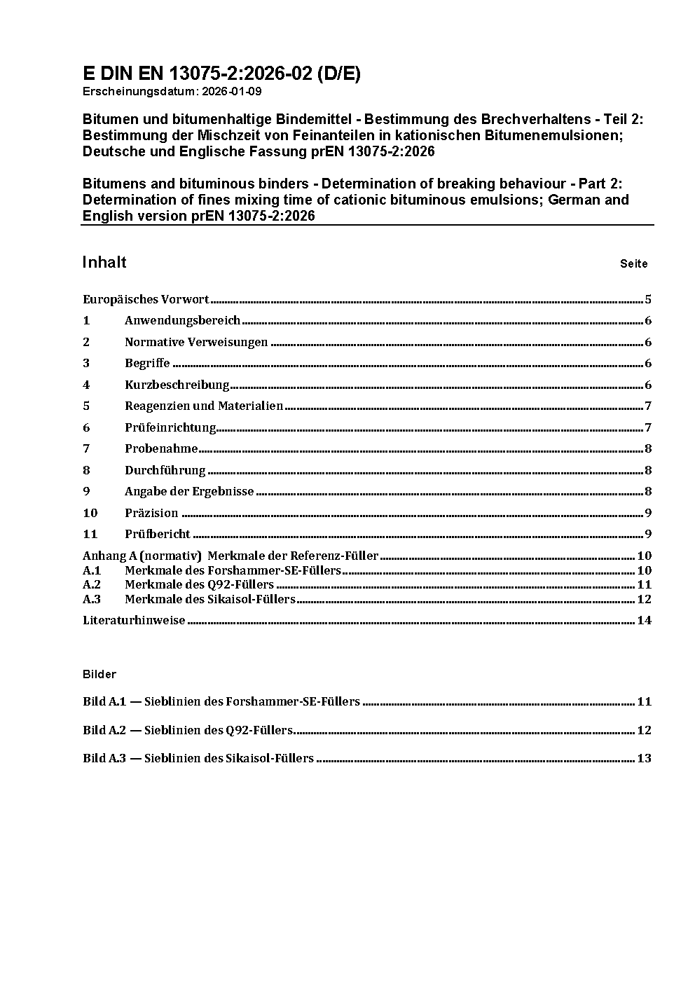 Bitumen and bituminous binders - Determination of breaking behaviour - Part 2: Determination of fines mixing time of cationic bitumen emulsions; German version EN 13075-2:2002