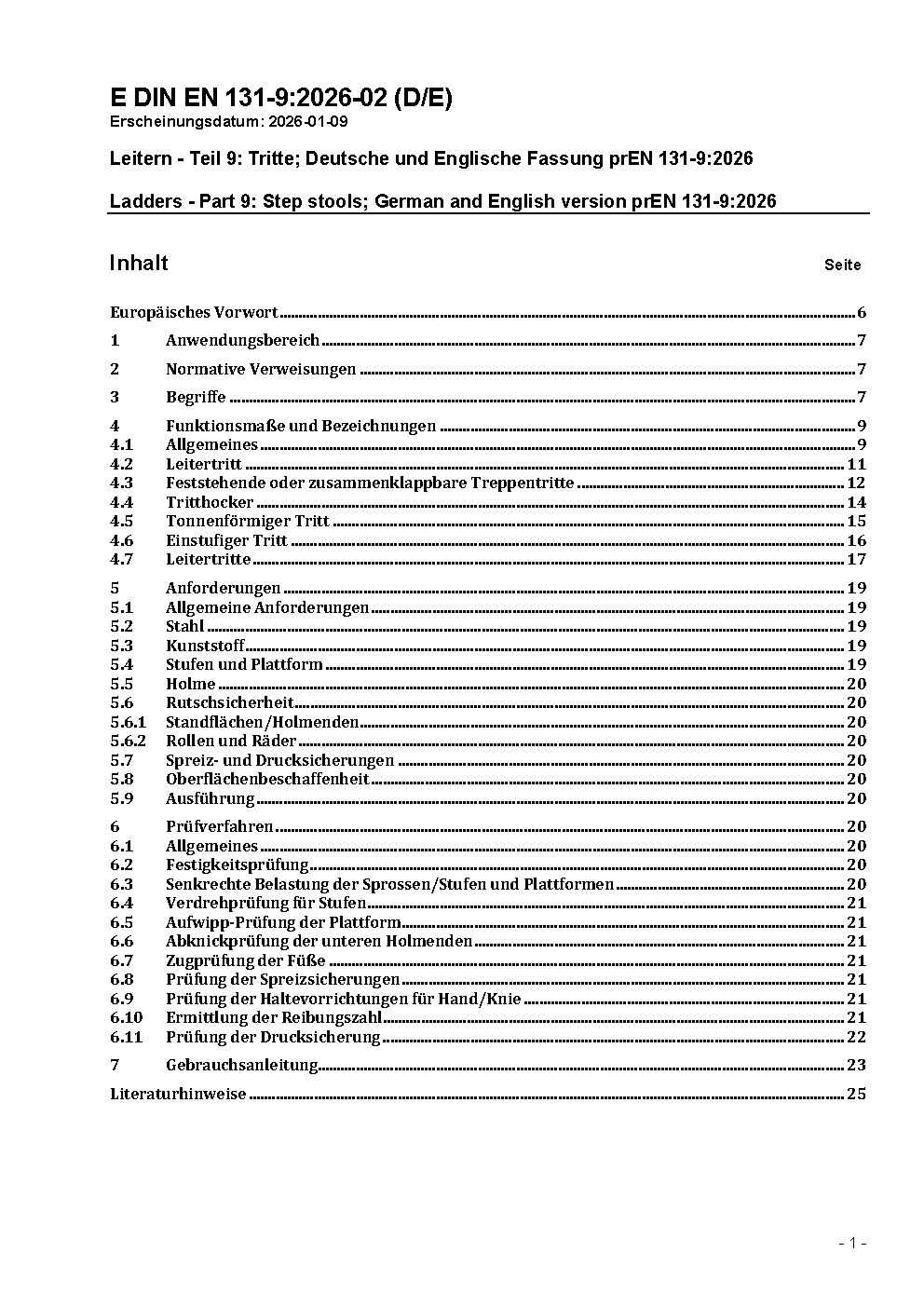 Leitern - Teil 9: Tritte; Deutsche und Englische Fassung prEN 131-9:2026