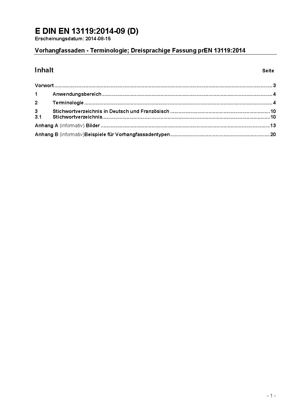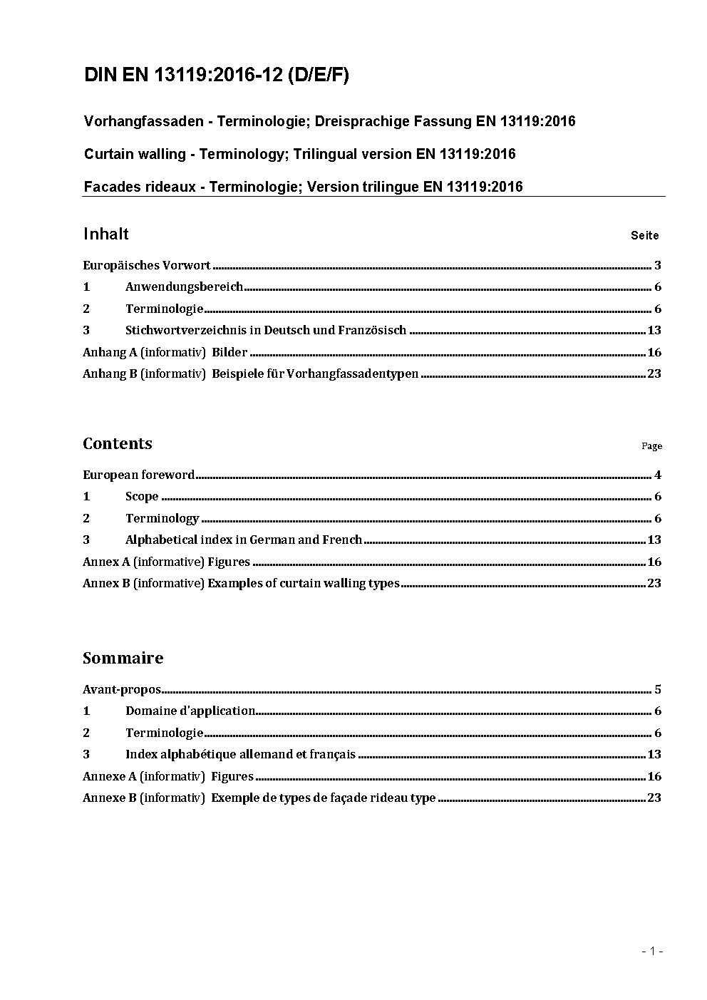 Vorhangfassaden - Terminologie; Dreisprachige Fassung EN 13119:2007