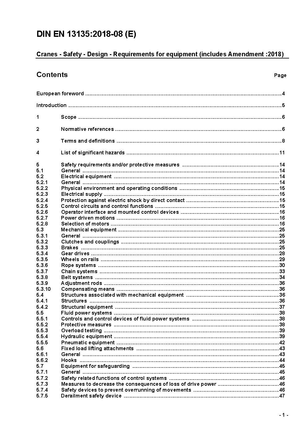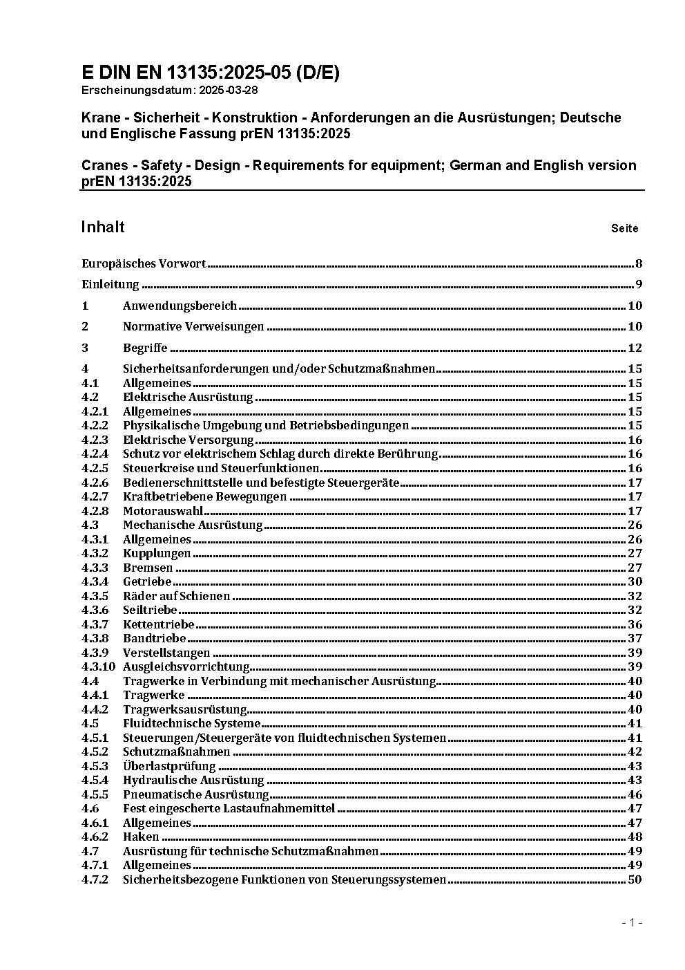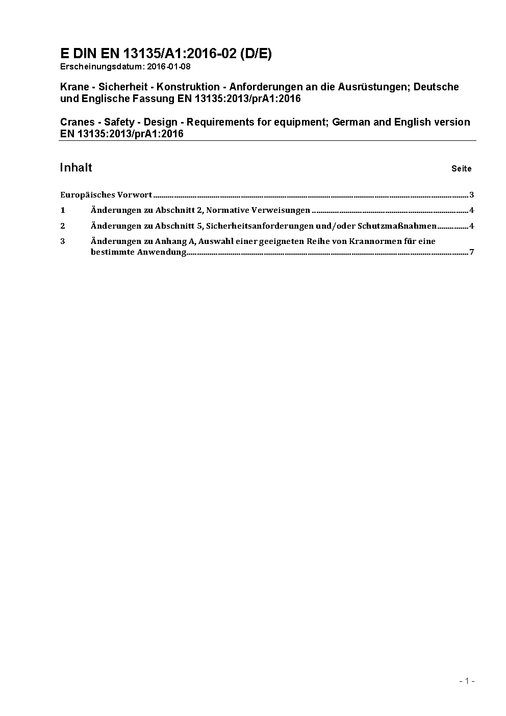 Cranes - Safety - Design - Requirements for equipment; German version prEN 13135:2011