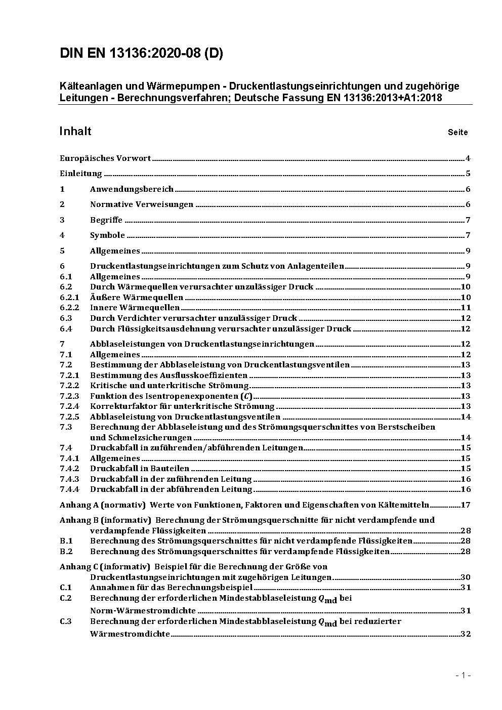 Refrigerating systems and heat pumps - Pressure relief devices and their associated piping - Methods for calculation; German and English version EN 13136:2013/prA1:2017