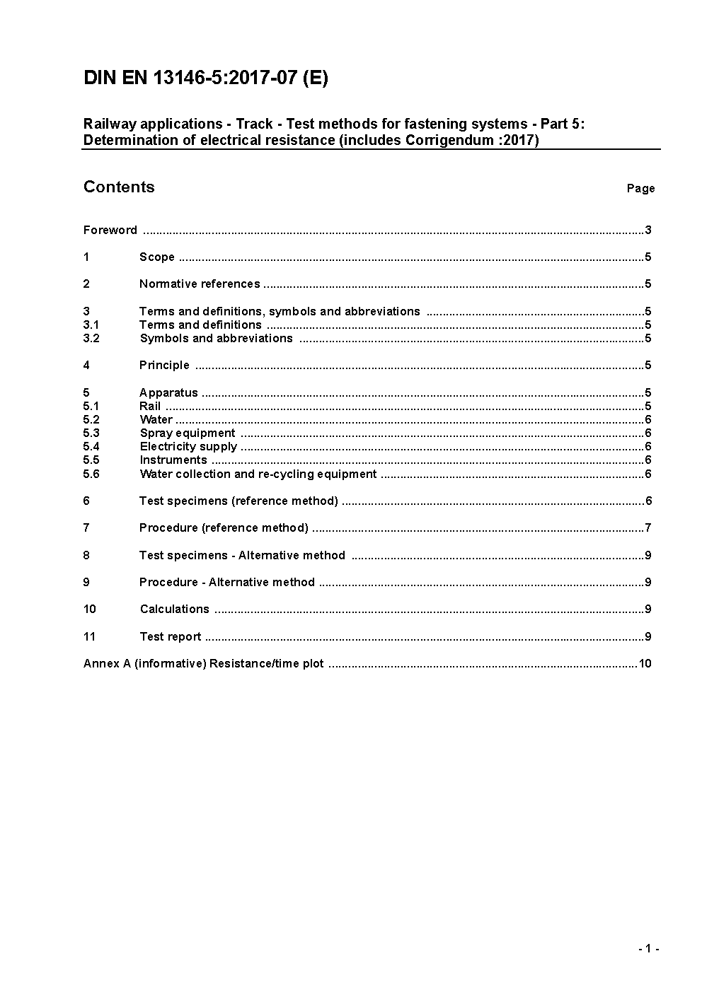 Bahnanwendungen - Oberbau - Prüfverfahren für Schienenbefestigungssysteme - Teil 5: Bestimmung des elektrischen Widerstands; Deutsche Fassung EN 13146-5:2012 + AC:2017