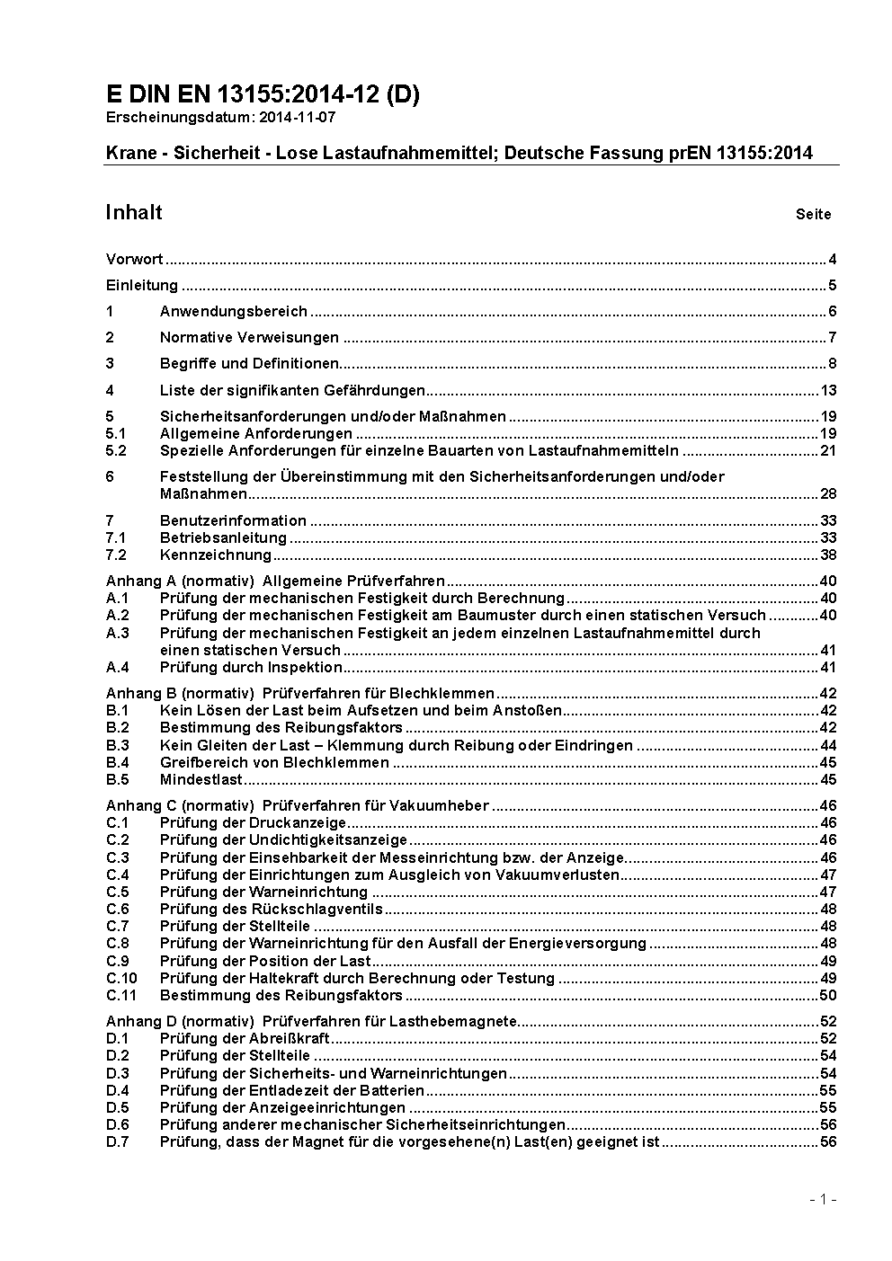 Krane - Sicherheit - Lose Lastaufnahmemittel; Deutsche Fassung prEN 13155:1998