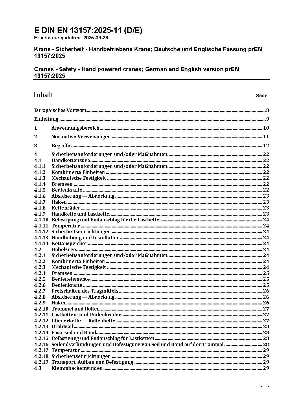 Krane - Sicherheit - Handbetriebene Krane; Deutsche Fassung EN 13157:2004