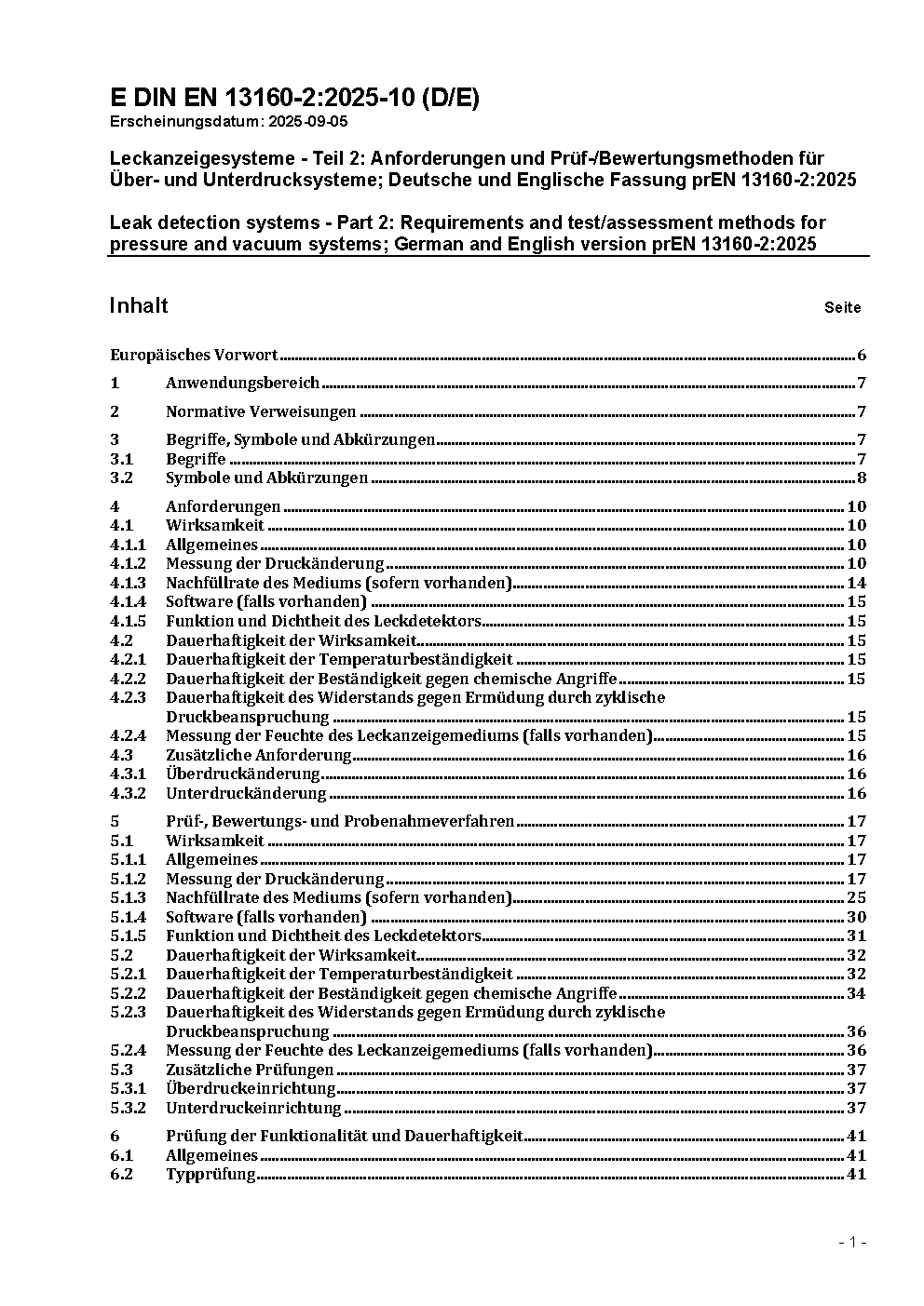 Leak detection systems - Part 2: Pressure and vacuum systems; German version EN 13160-2:2003