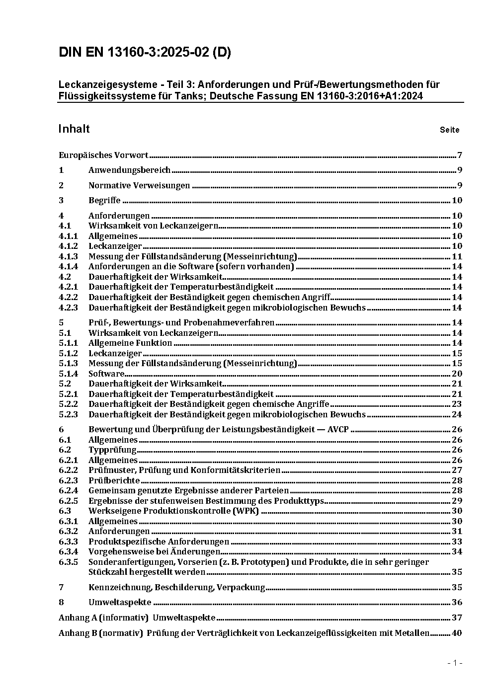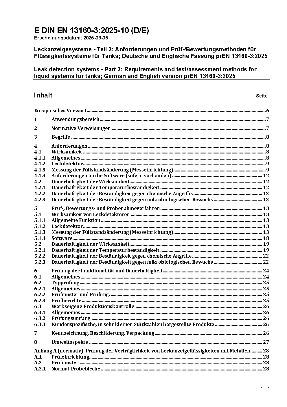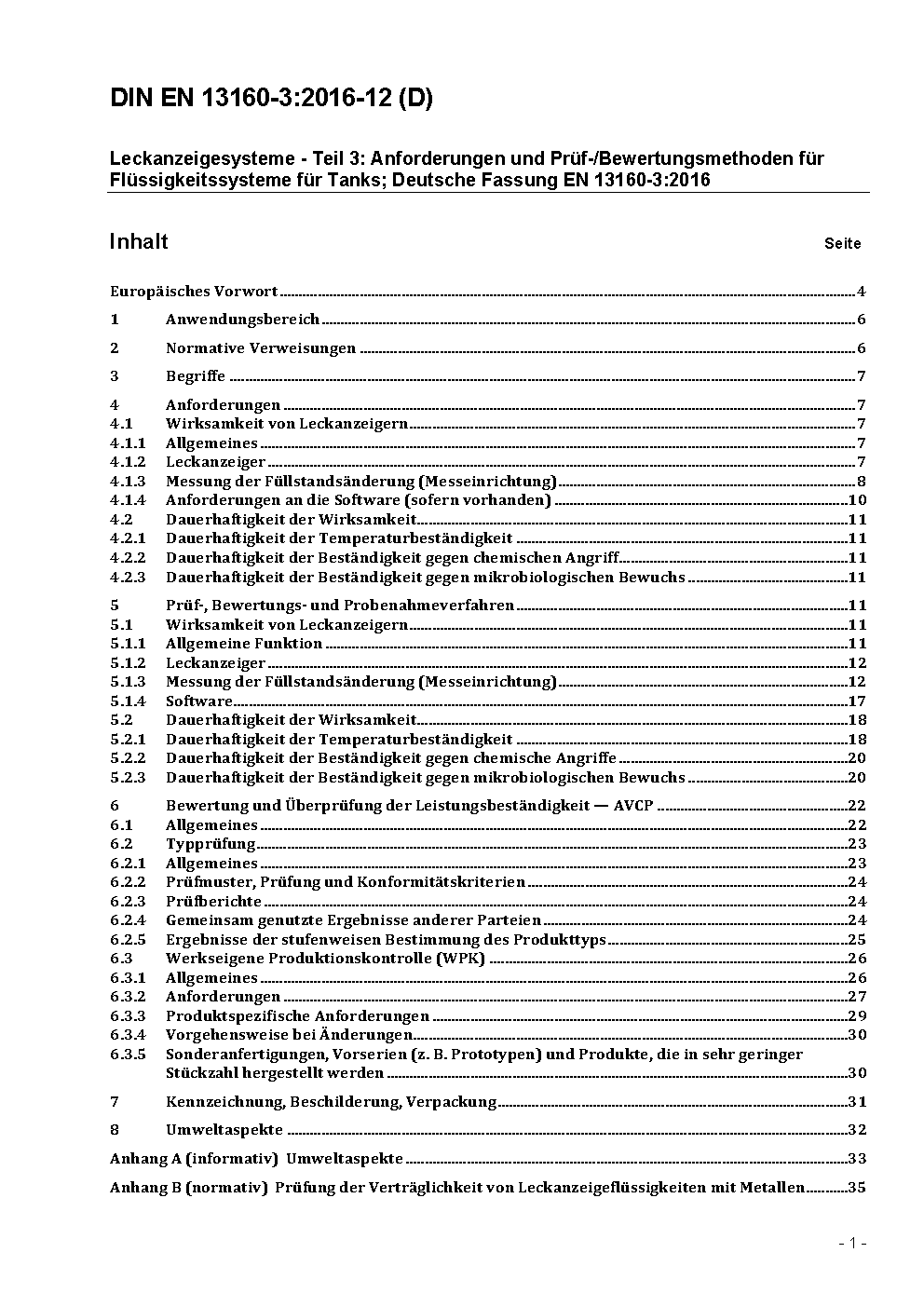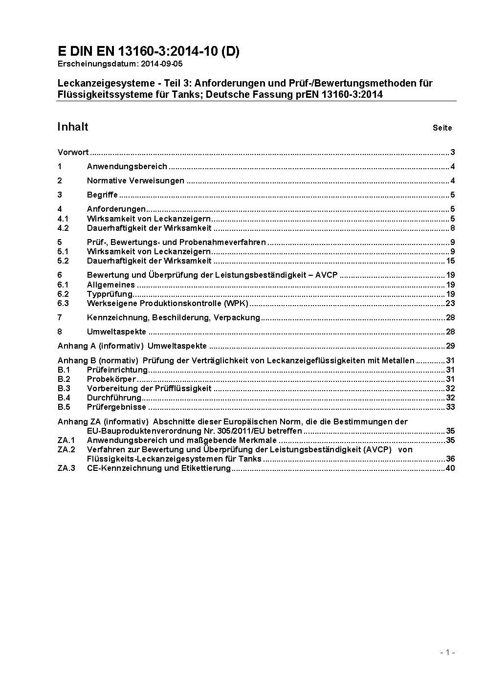 Leckanzeigesysteme - Teil 3: Flüssigkeitssysteme für Tanks; Deutsche Fassung EN 13160-3:2003