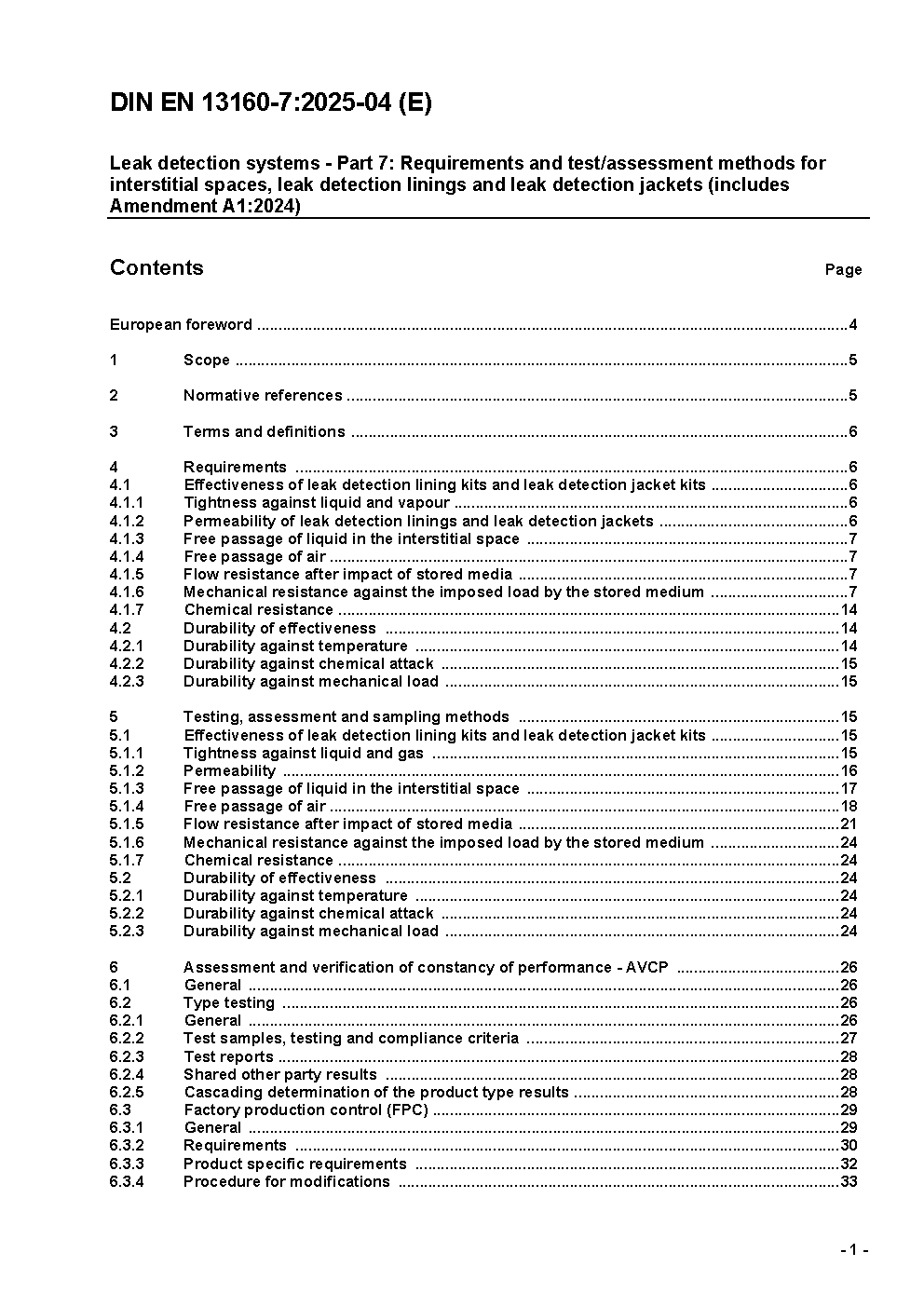 Leak detection systems - Part 7: General requirements and test methods for interstitial spaces, leak protecting linings and leak protecting jackets; German version EN 13160-7:2003