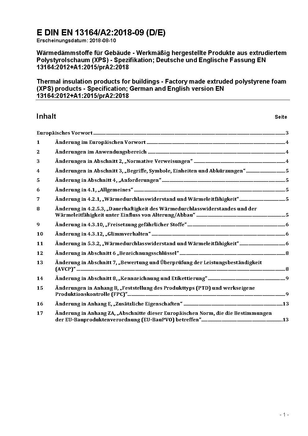 Amendement prévu par DIN EN 13164/A1 (2014-10).