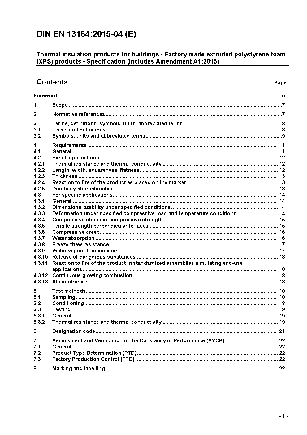 Thermal insulation products for buildings - Factory made extruded polystyrene foam (XPS) products - Specification; German version EN 13164:2012