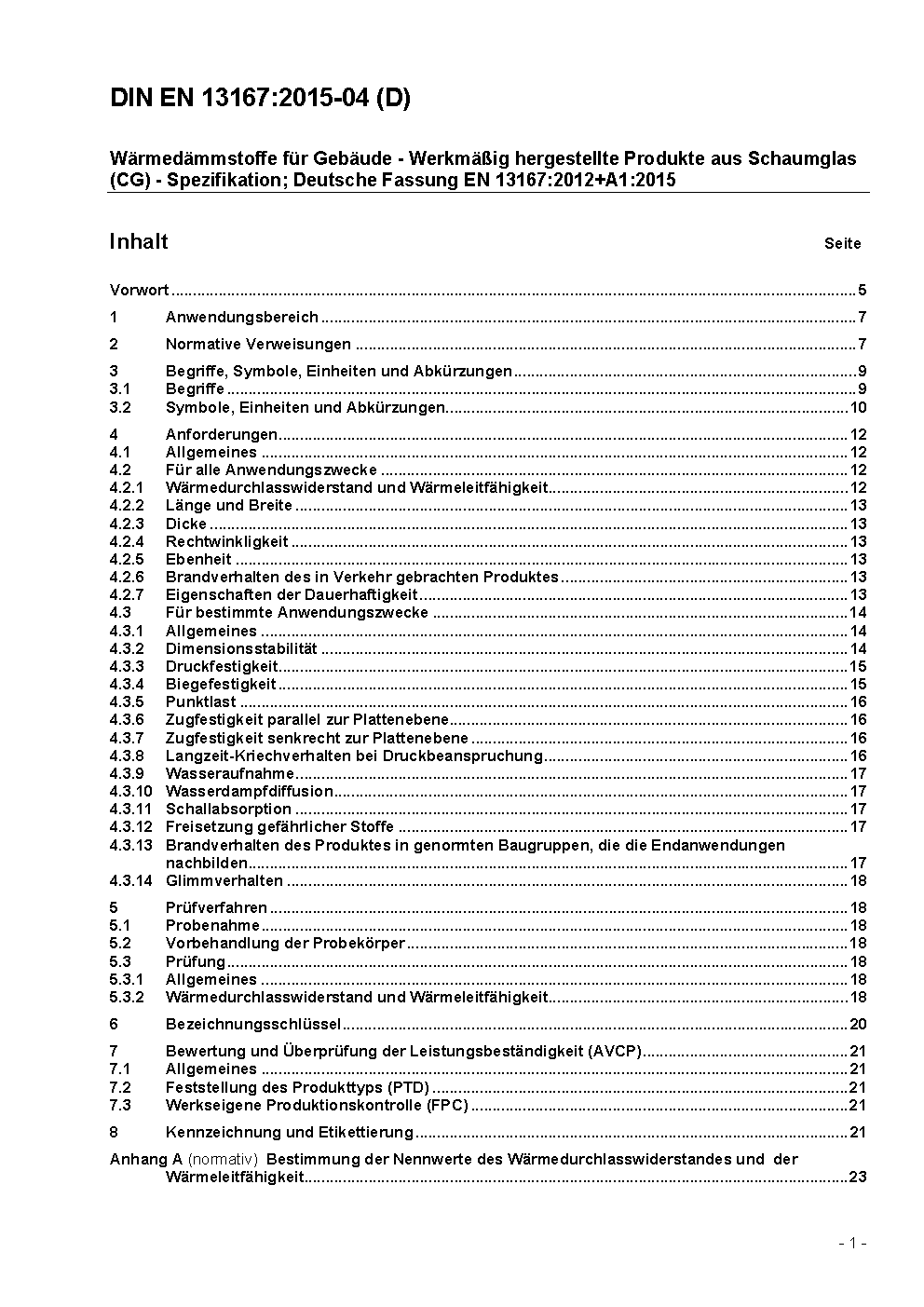 Wärmedämmstoffe für Gebäude - Werkmäßig hergestellte Produkte aus Schaumglas (CG) - Spezifikation; Deutsche Fassung EN 13167:2012