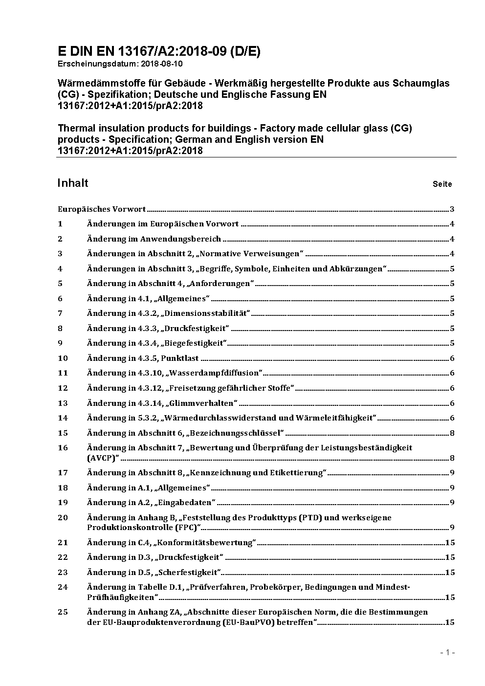 Amendement prévu par DIN EN 13167/A1 (2014-10).