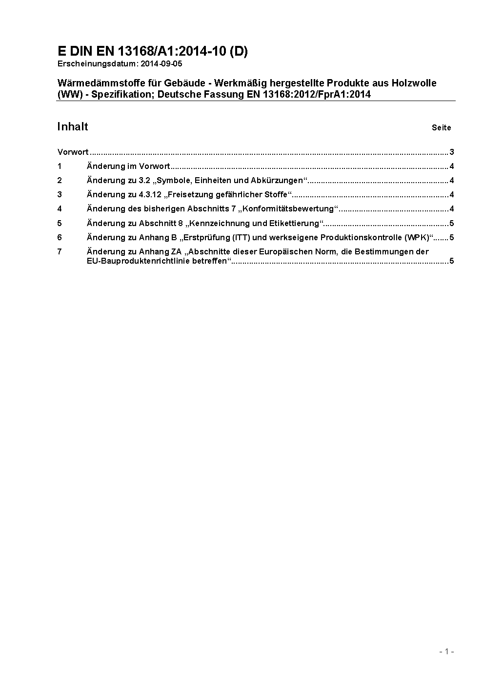 Prévu comme amendement à DIN EN 13168 (2013-03).