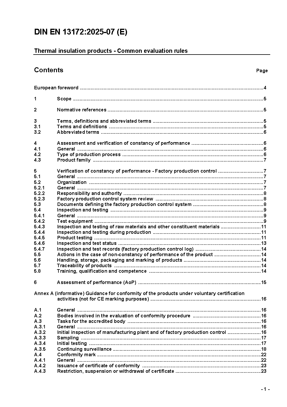Thermal insulation products - Evaluation of conformity; German version EN 13172:2012