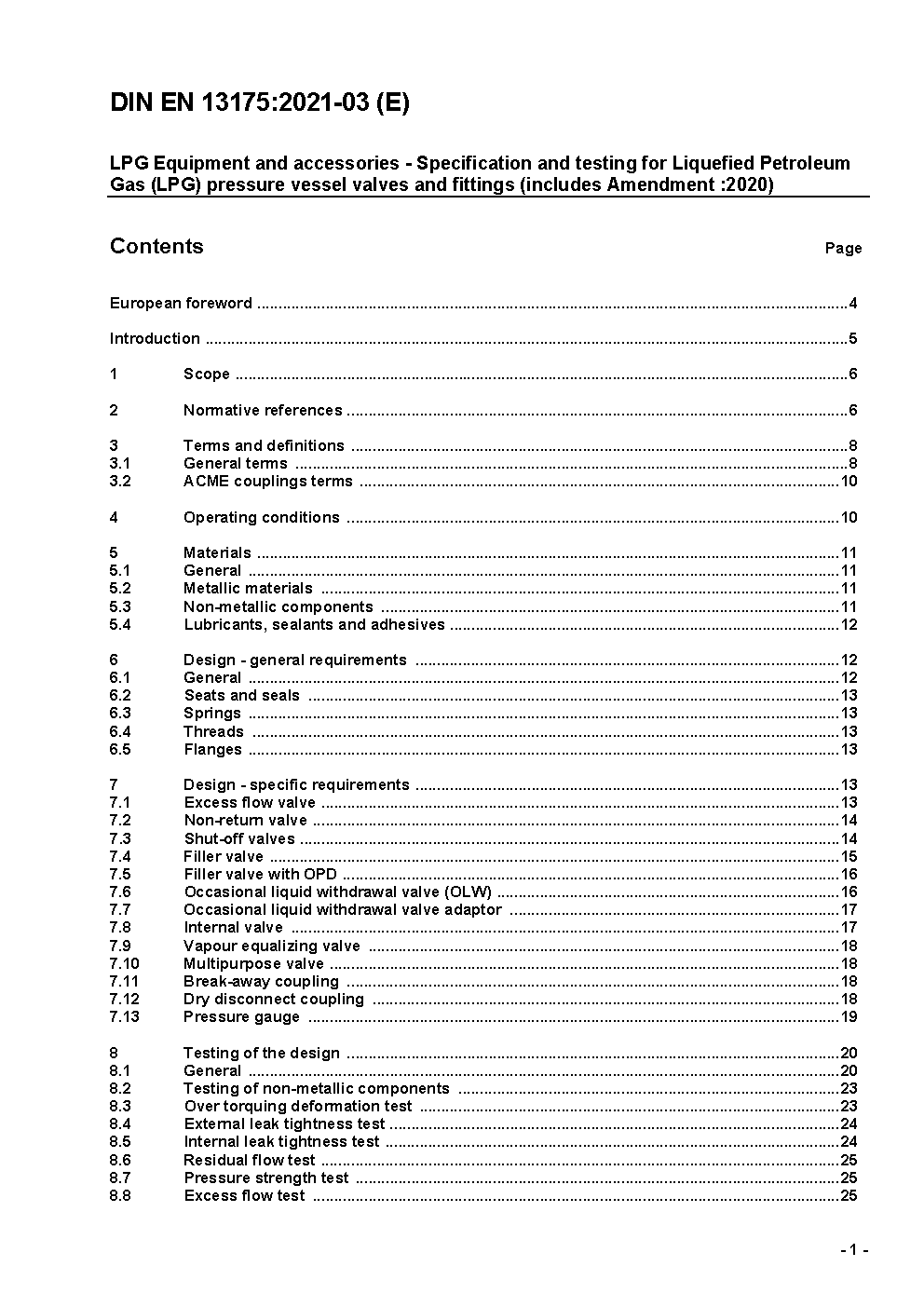 LPG Equipment and accessories - Specification and testing for Liquefied Petroleum Gas (LPG) pressure vessel valves and fittings; German version FprEN 13175:2014