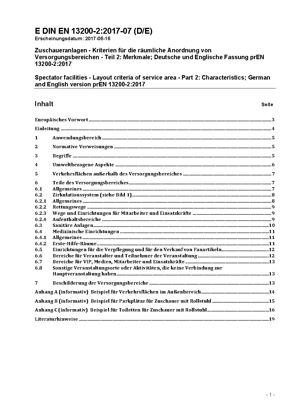 Zuschaueranlagen - Kriterien für die räumliche Anordnung von Versorgungsbereichen - Teil 2: Merkmale; Deutsche und Englische Fassung prEN 13200-2:2017