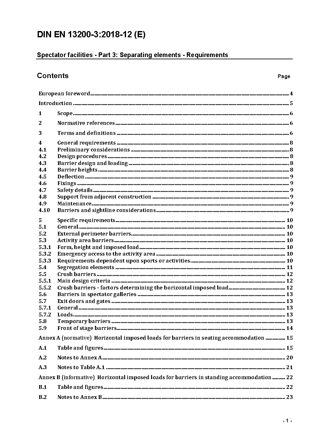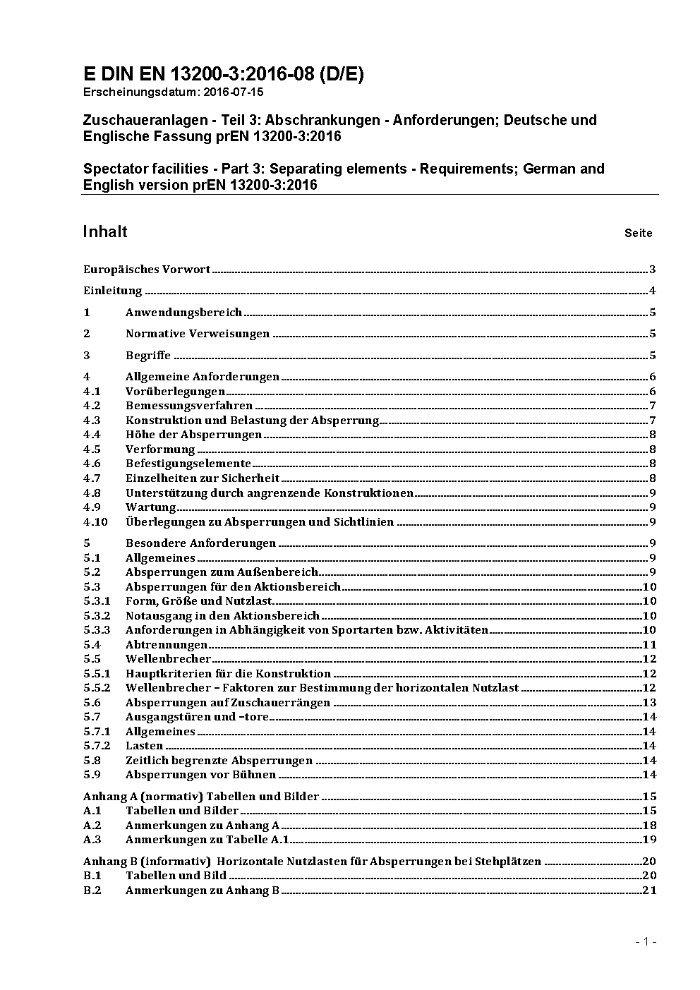 Zuschaueranlagen - Teil 3: Abschrankungen, Anforderungen; Deutsche Fassung prEN 13200-3:2004