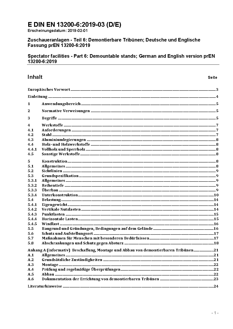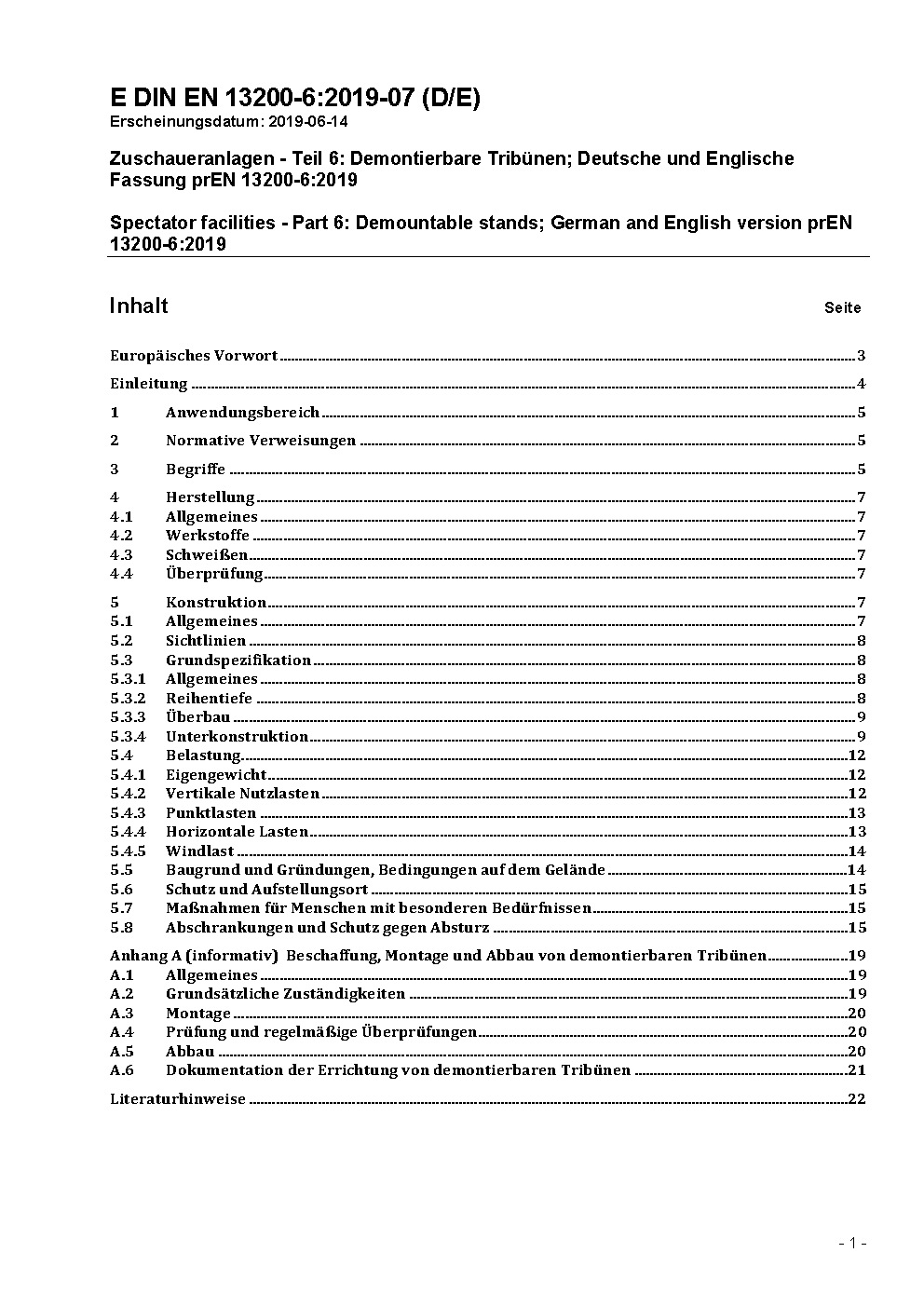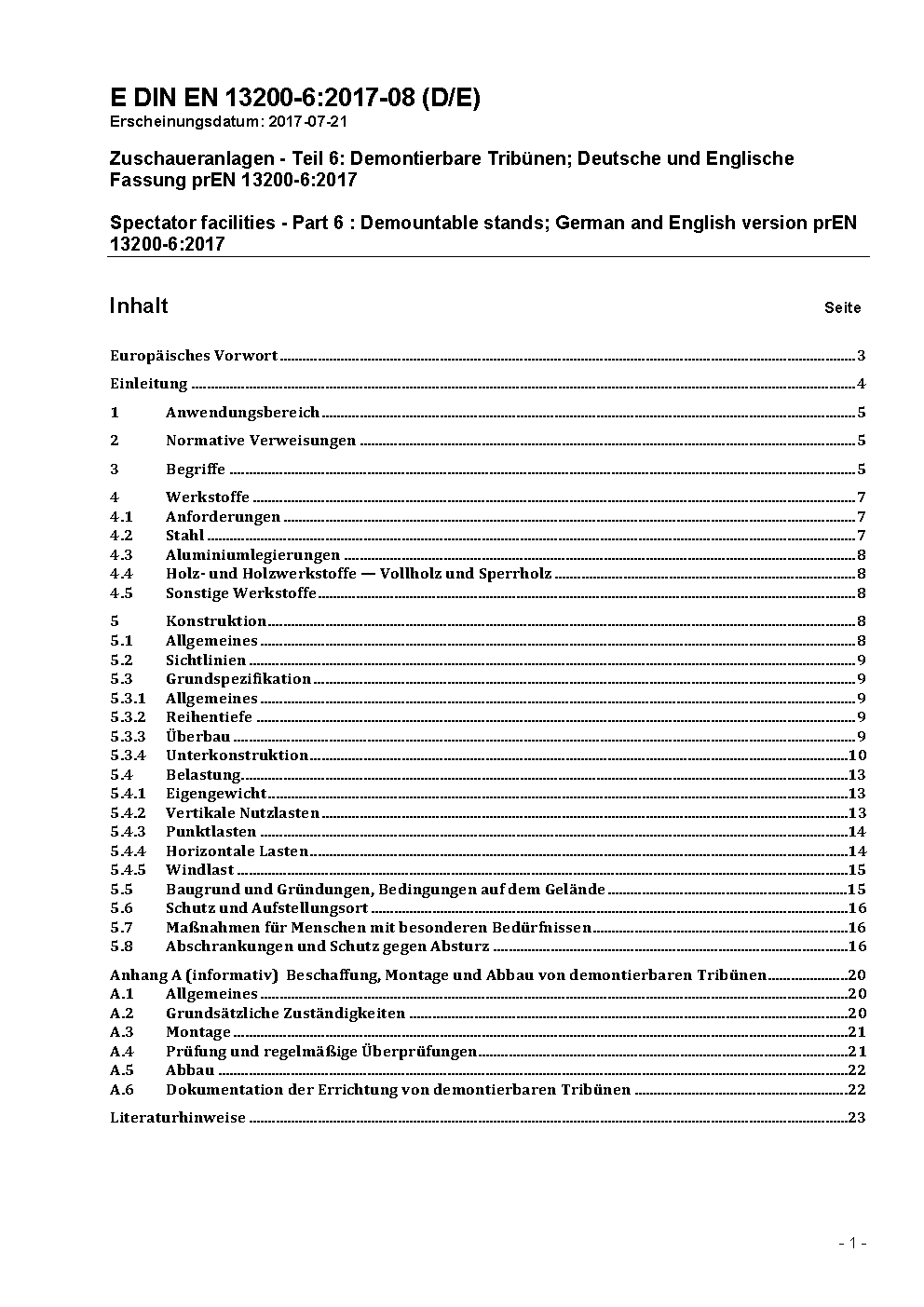 Zuschaueranlagen - Teil 6: Demontierbare Tribünen; Deutsche und Englische Fassung prEN 13200-6:2017