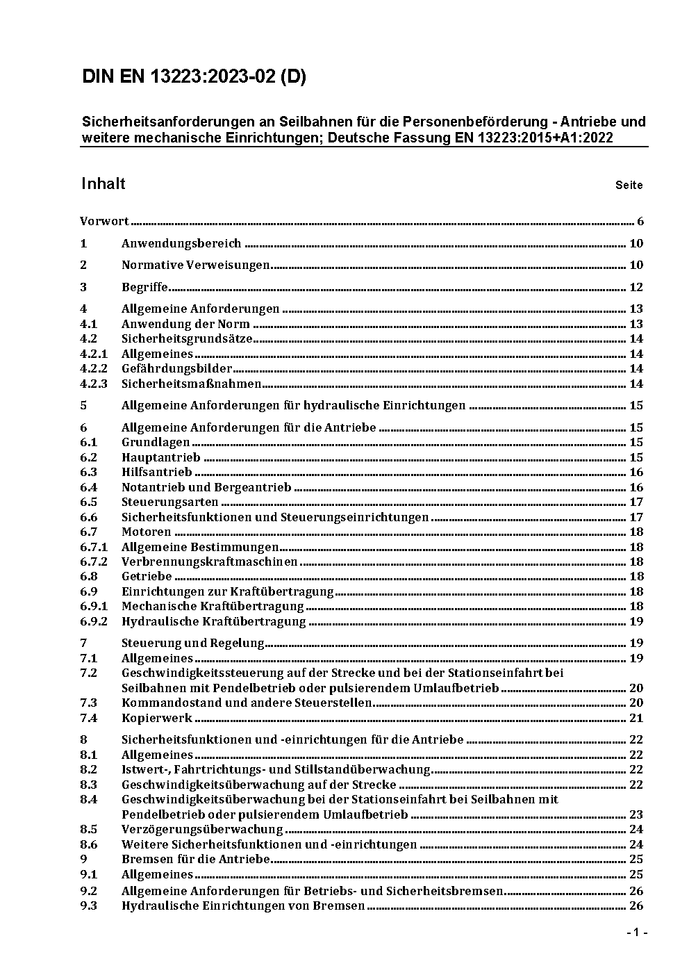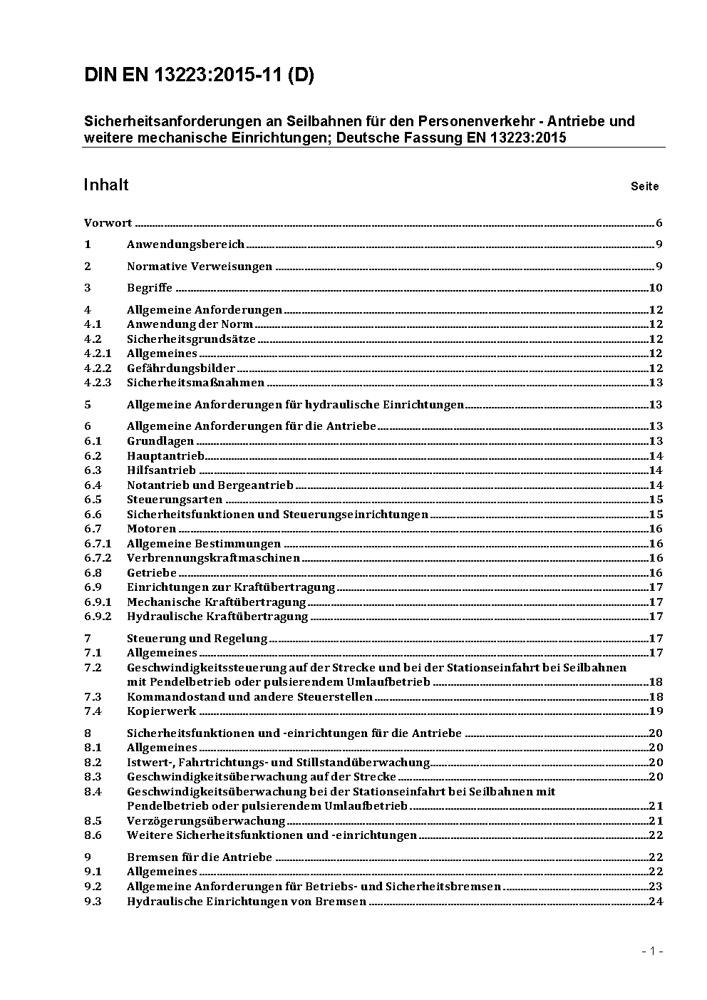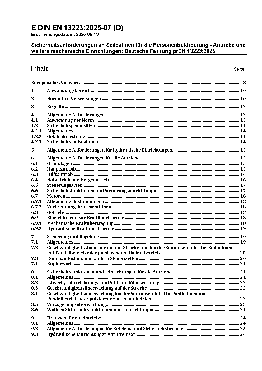 Safety requirements for cableway installations designed to carry persons - Drive systems and other mechanical equipment; German version prEN 13223:2013