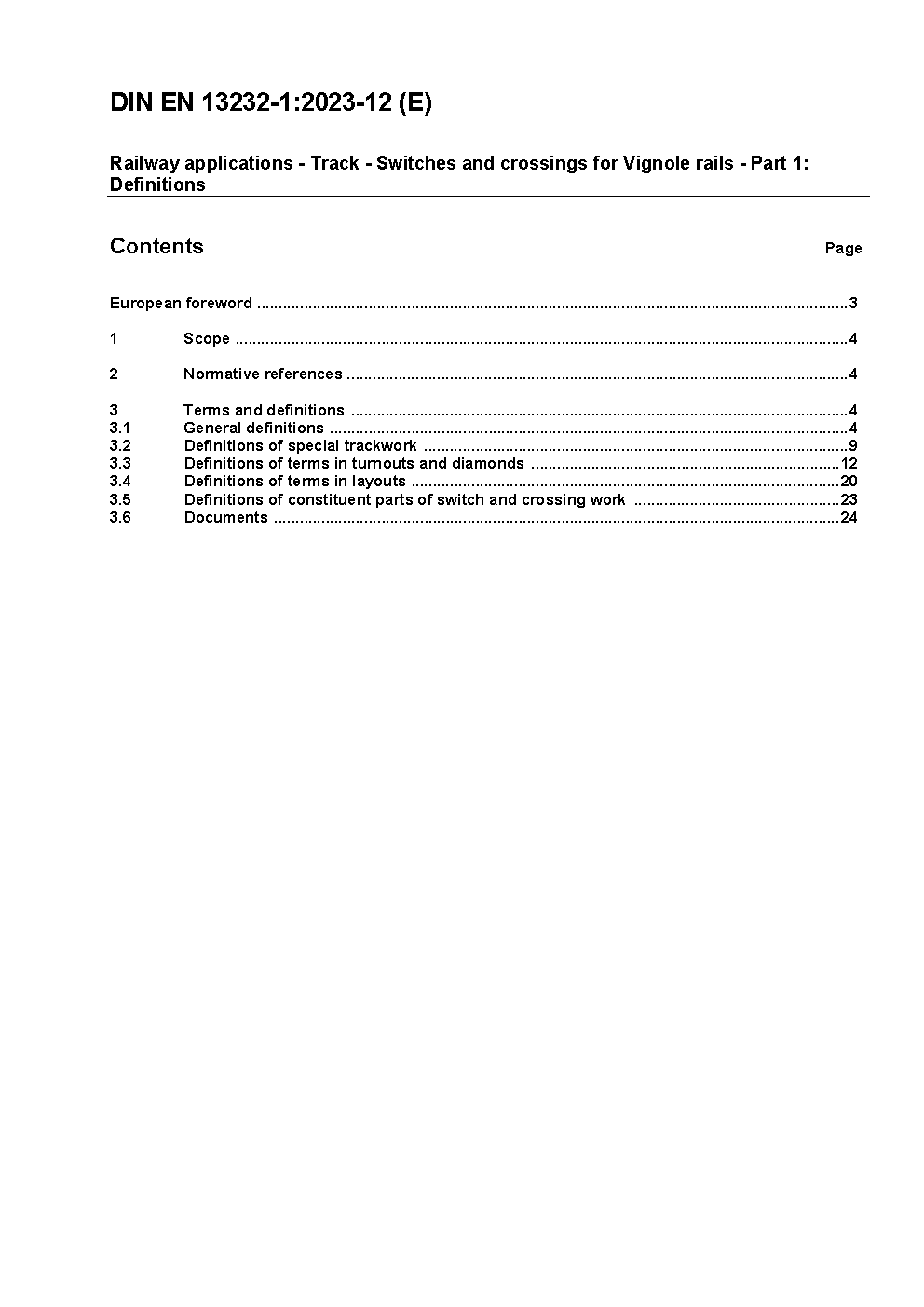 Railway applications - Track - Switches and Crossings - Part 1: Definitions; German version EN 13232-1:2003