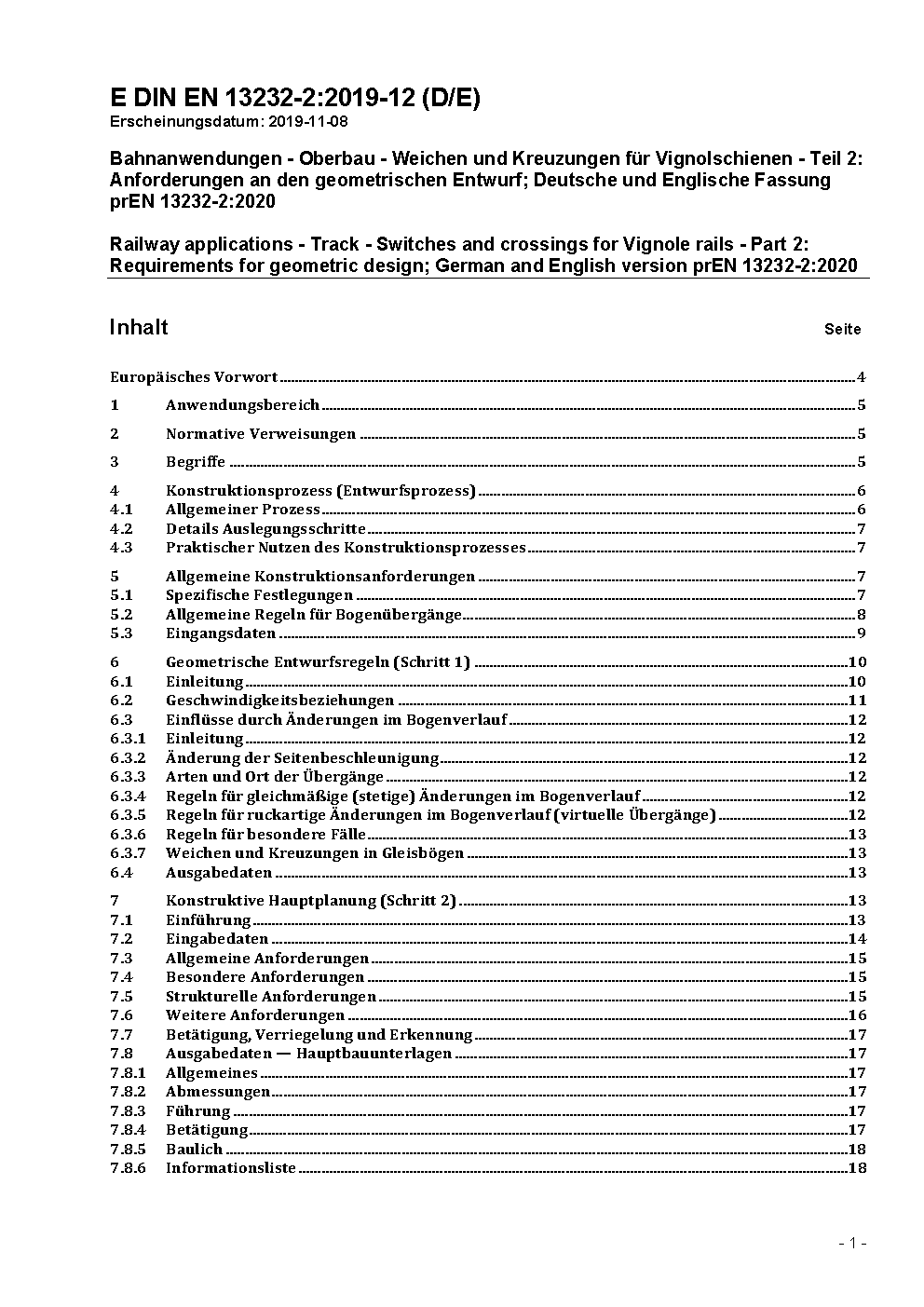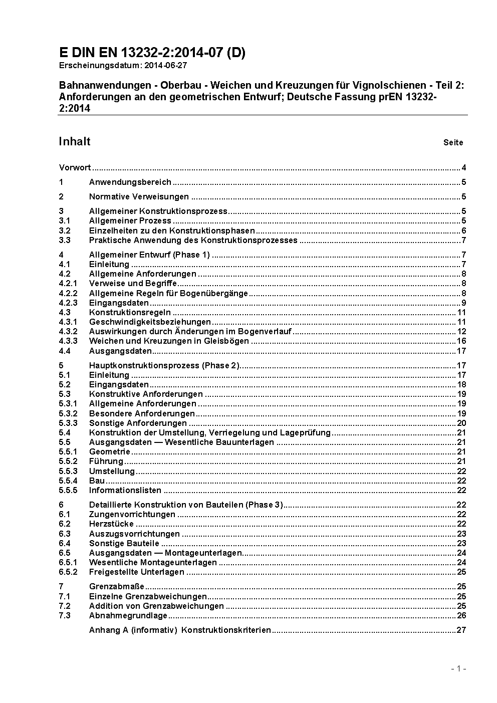 Bahnanwendungen - Oberbau; Weichen und Kreuzungen; Leistungsvermögen und Abnahme - Teil 2: Konstruktion und Toleranzen; Deutsche Fassung prEN 13232-2:1998