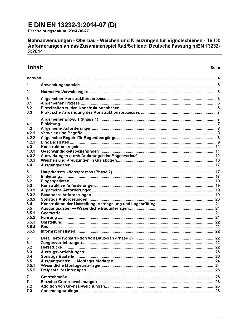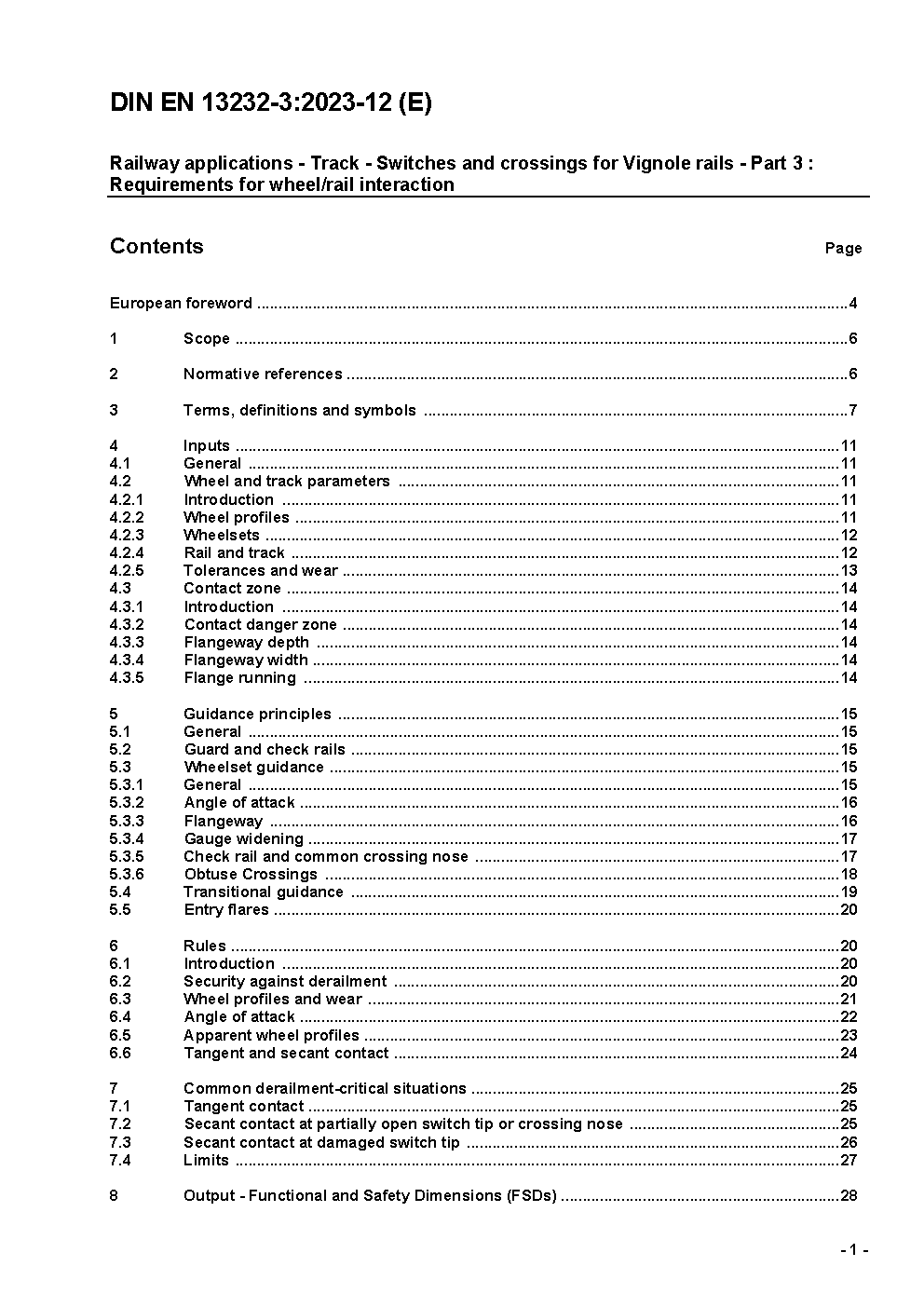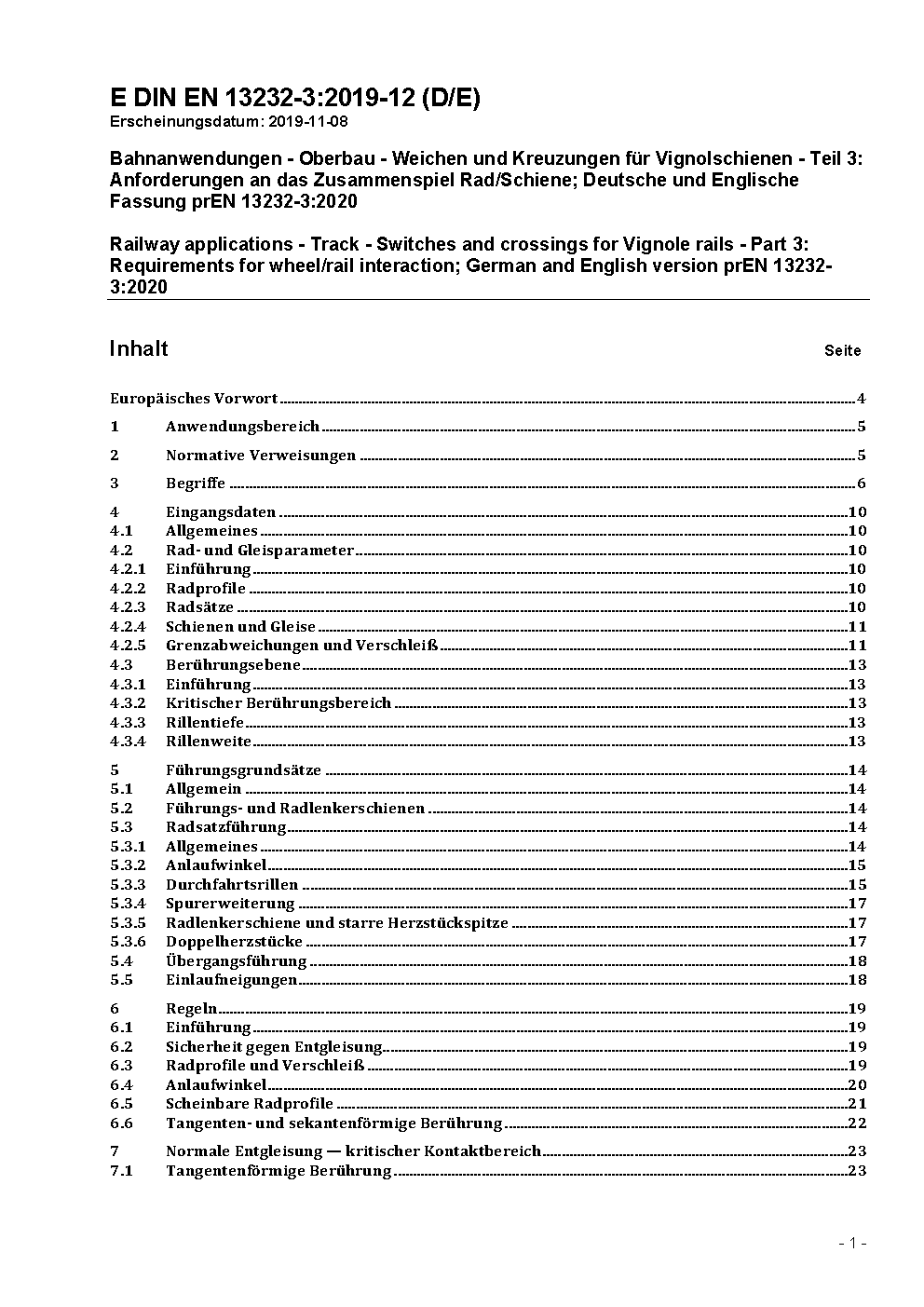 Bahnanwendungen - Oberbau; Weichen und Kreuzungen; Leistungsvermögen und Abnahme - Teil 3: Zusammenspiel Rad/Schiene; Deutsche Fassung prEN 13232-3:1998