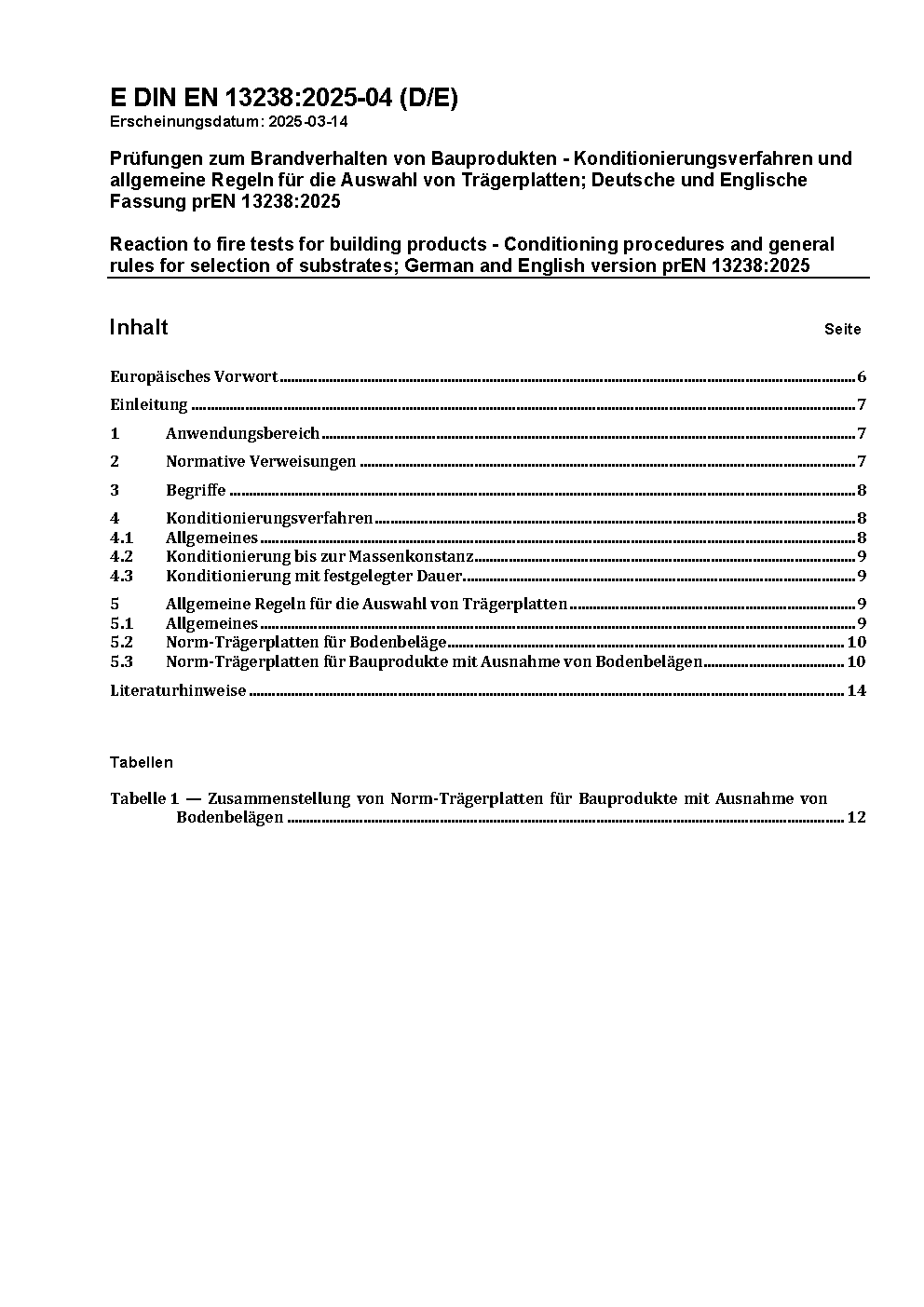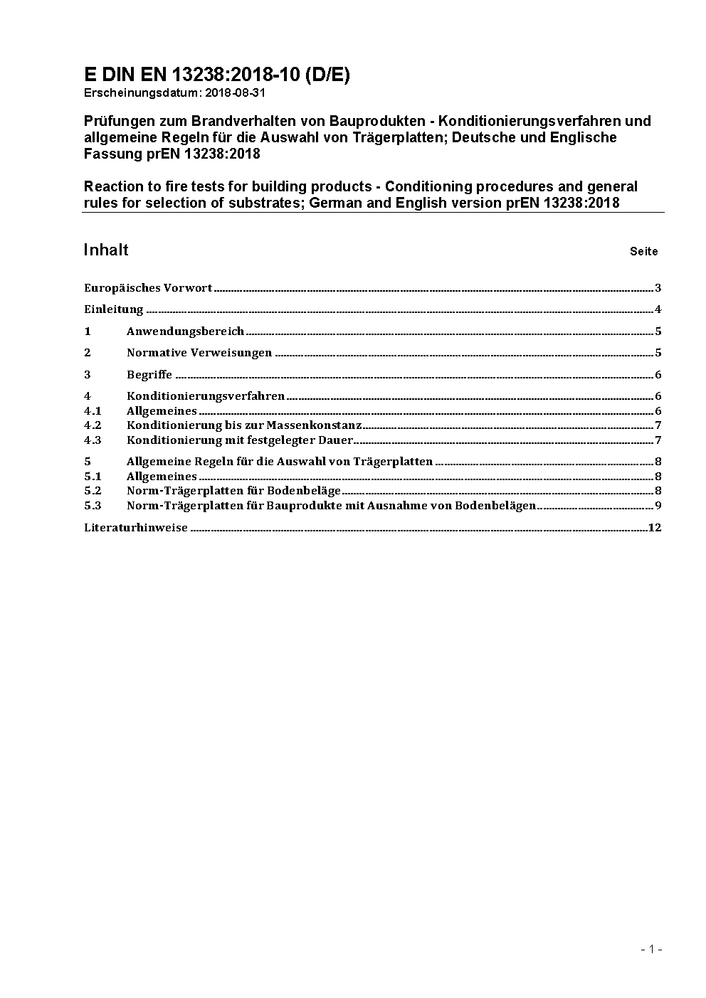 Prüfungen zum Brandverhalten von Bauprodukten - Konditionierungsverfahren und allgemeine Regeln für die Auswahl von Trägerplatten; Deutsche Fassung EN 13238:2001