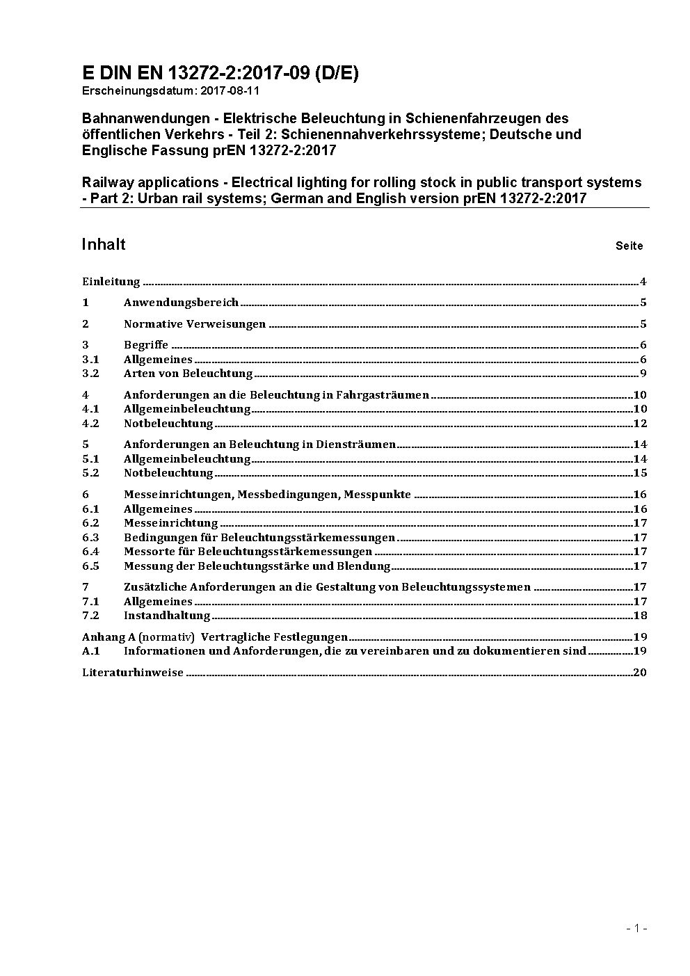 Bahnanwendungen - Elektrische Beleuchtung in Schienenfahrzeugen des öffentlichen Verkehrs - Teil 2: Schienennahverkehrssysteme; Deutsche und Englische Fassung prEN 13272-2:2017