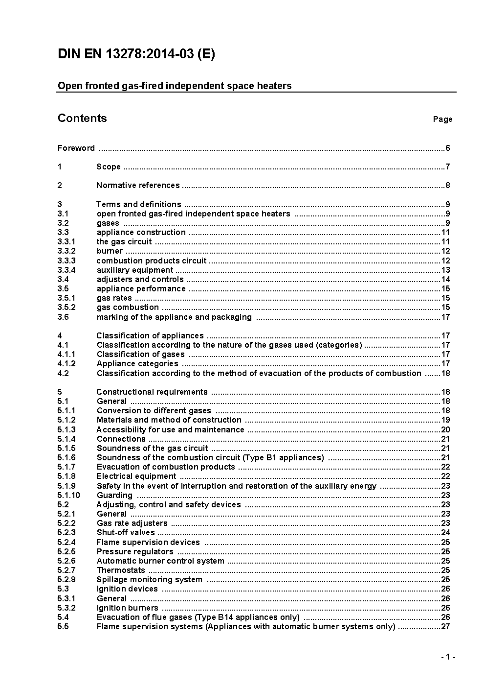 Open fronted gas-fired independend space heaters; German version EN 13278:2003