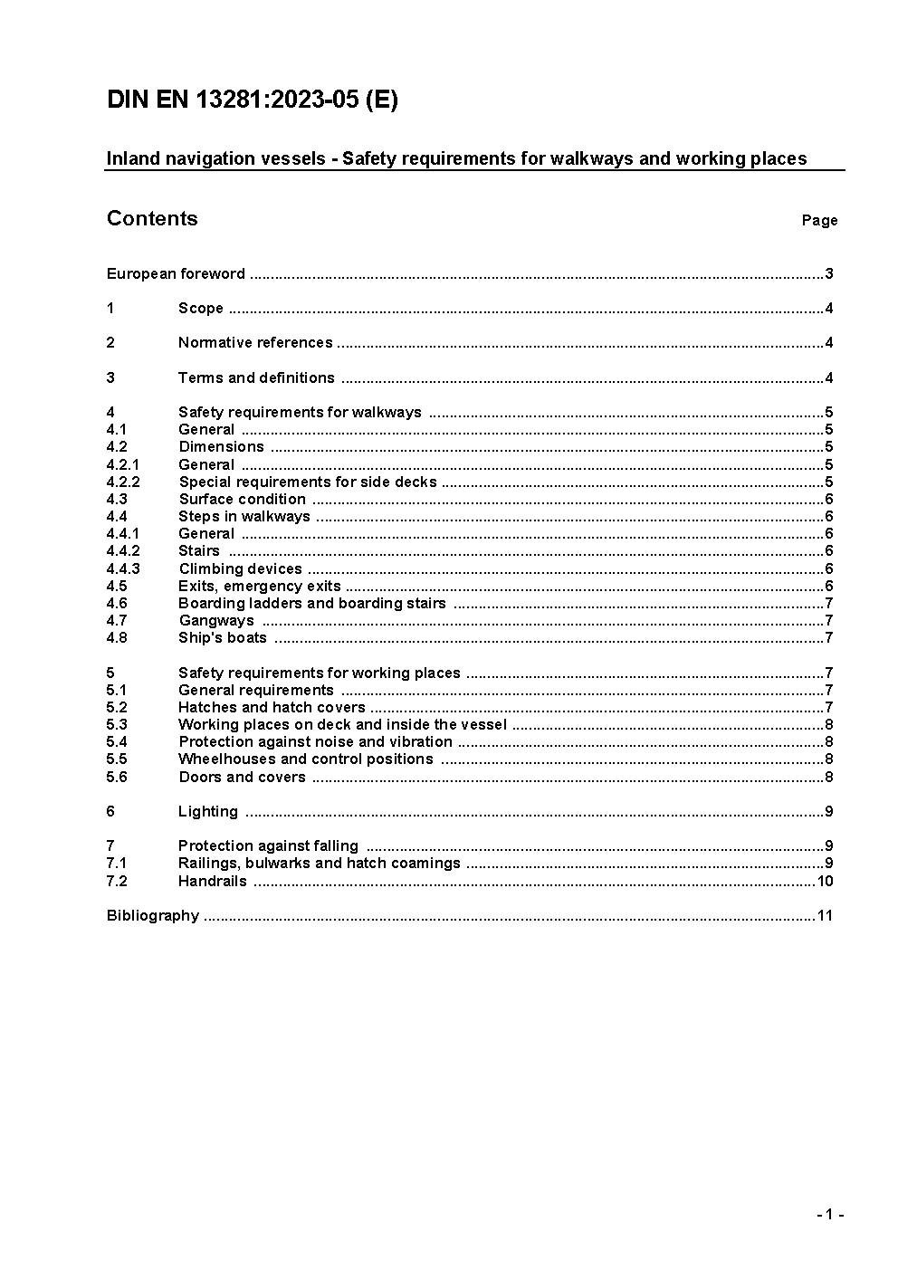 Inland navigation vessels - Safety requirements for walkways and working places; German version EN 13281:2000